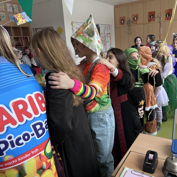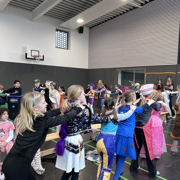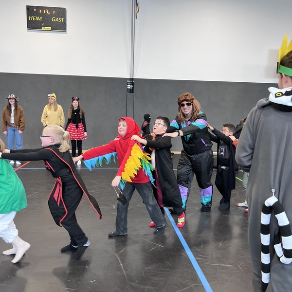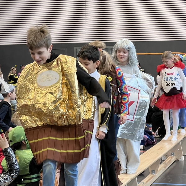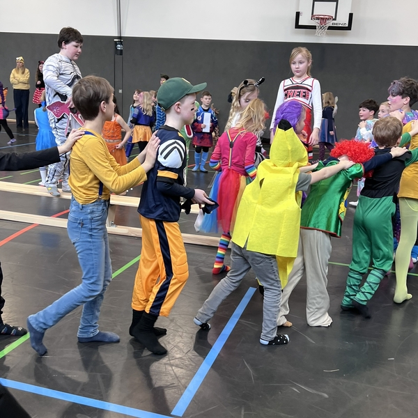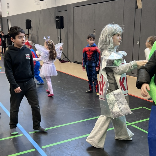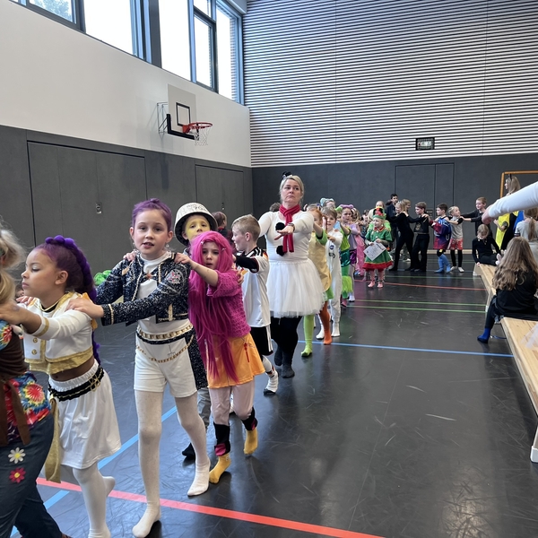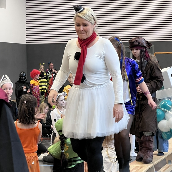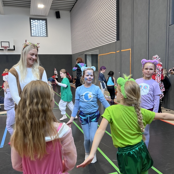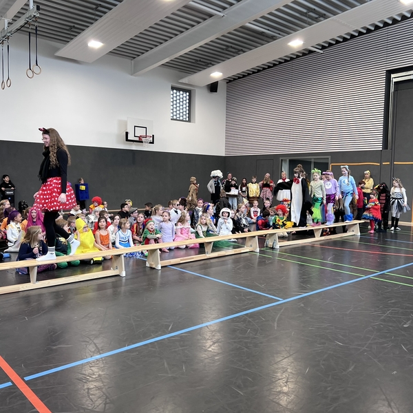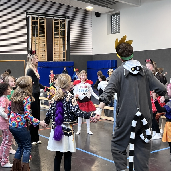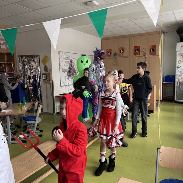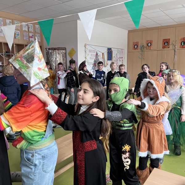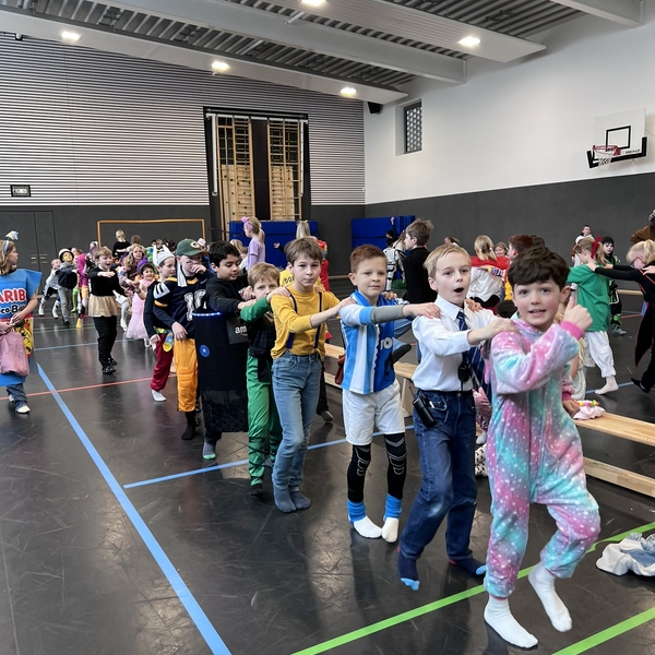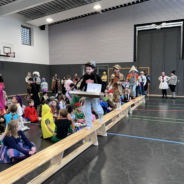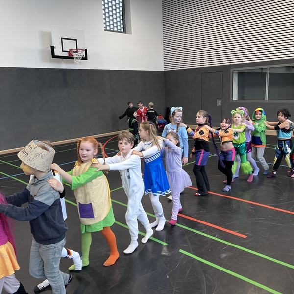 Nach dem Feiern in den Klassen ging es schließlich für alle Kinder gemeinsam in die Turnhalle. Dort wurde ausgelassen weitergefeiert, getanzt und gelacht. Zum krönenden Abschluss fand die große Kostümprämierung der gesamten Schule statt, bei der die besten Kostüme ausgewählt und besonders geehrt wurden.