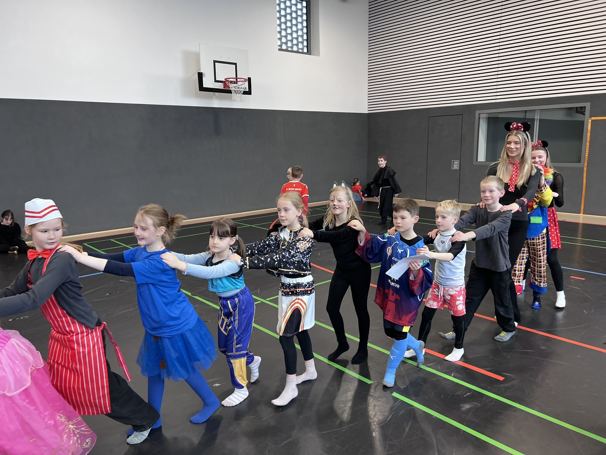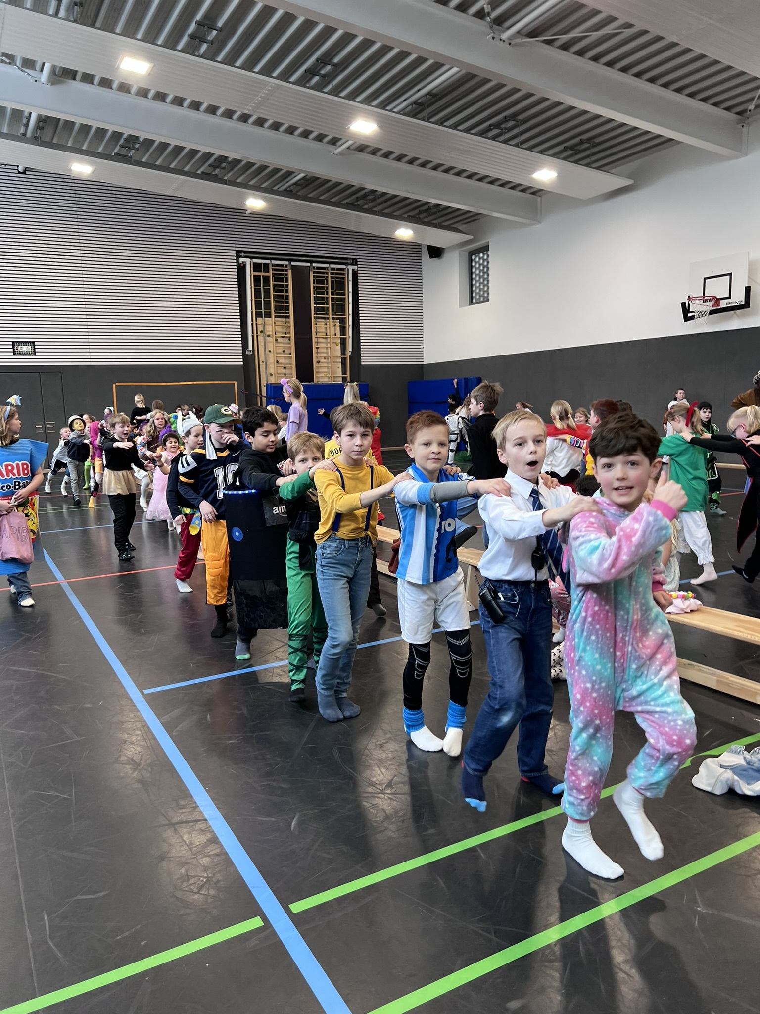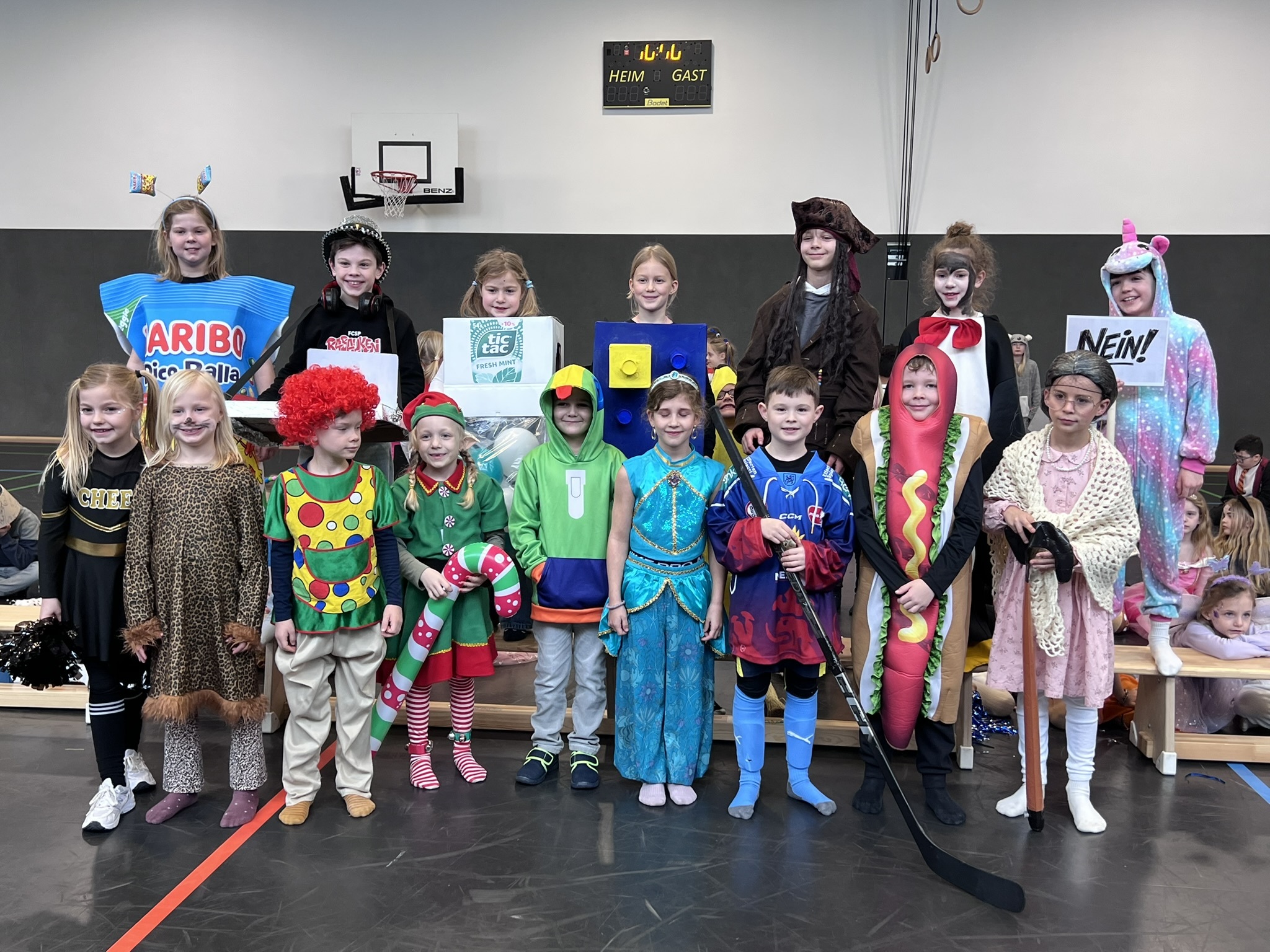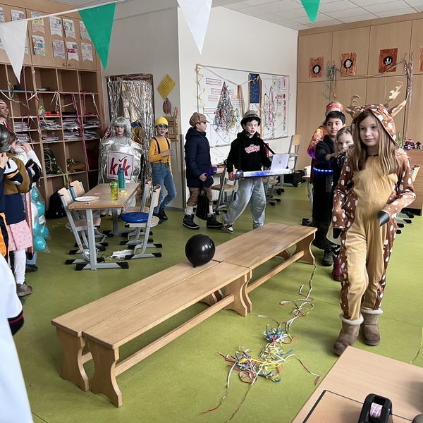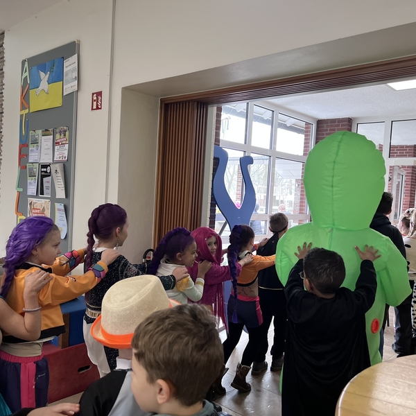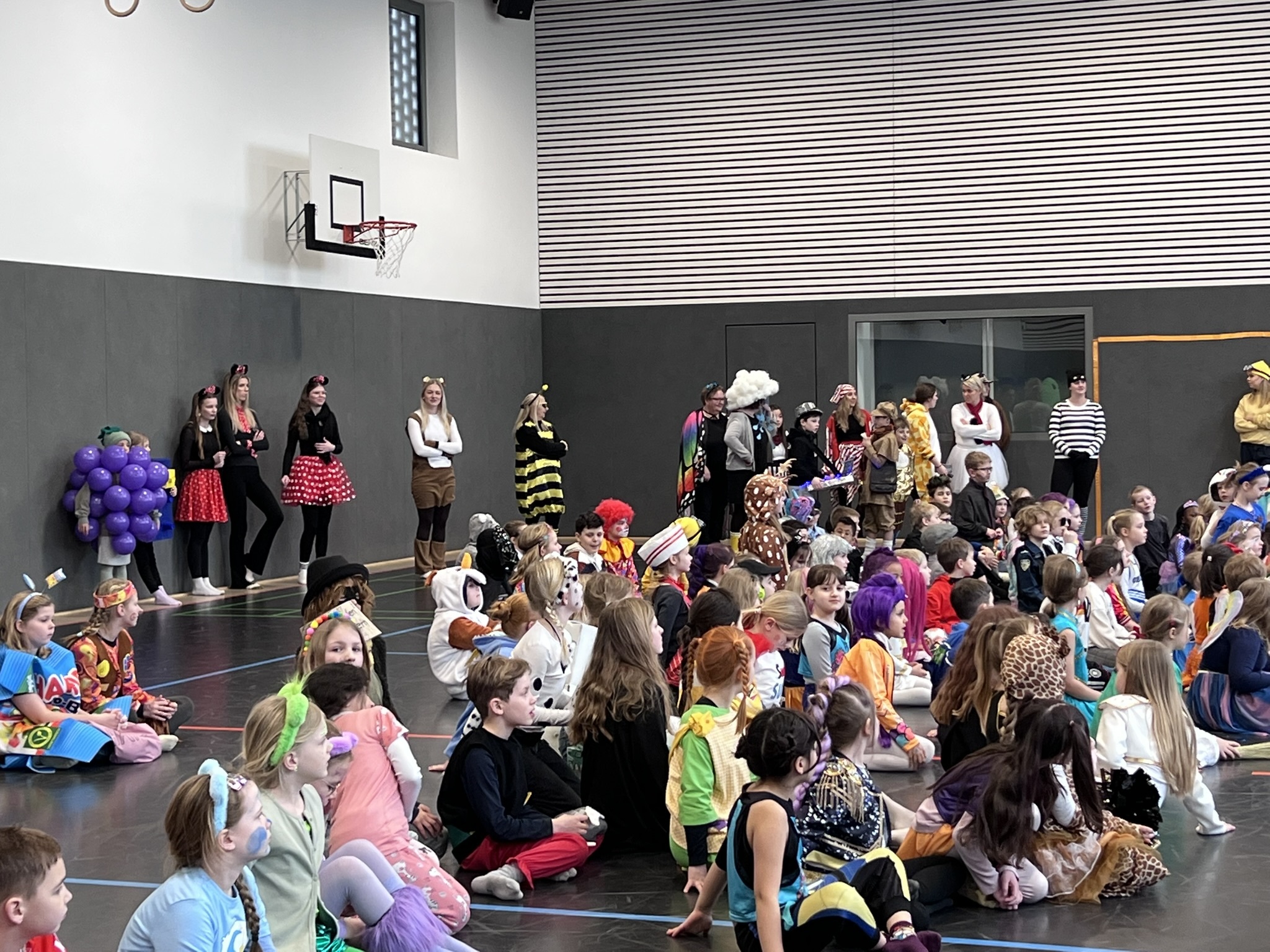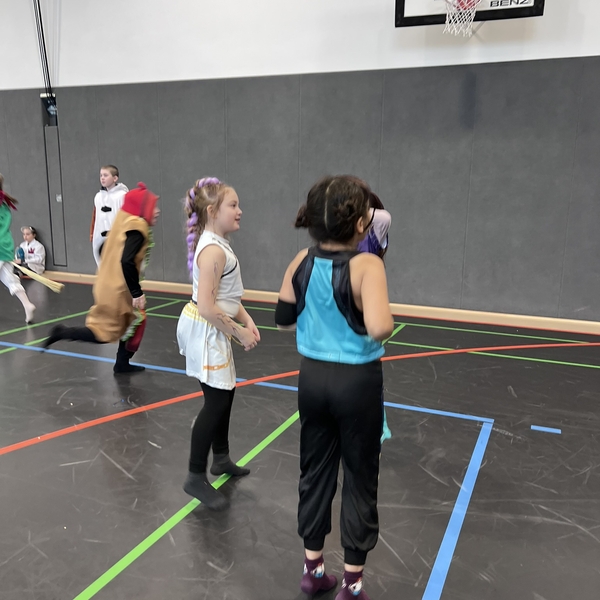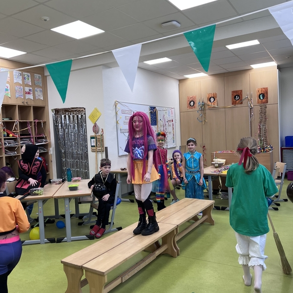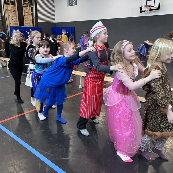 Nach dem Feiern in den Klassen ging es schließlich für alle Kinder gemeinsam in die Turnhalle. Dort wurde ausgelassen weitergefeiert, getanzt und gelacht. Zum krönenden Abschluss fand die große Kostümprämierung der gesamten Schule statt, bei der die besten Kostüme ausgewählt und besonders geehrt wurden.
