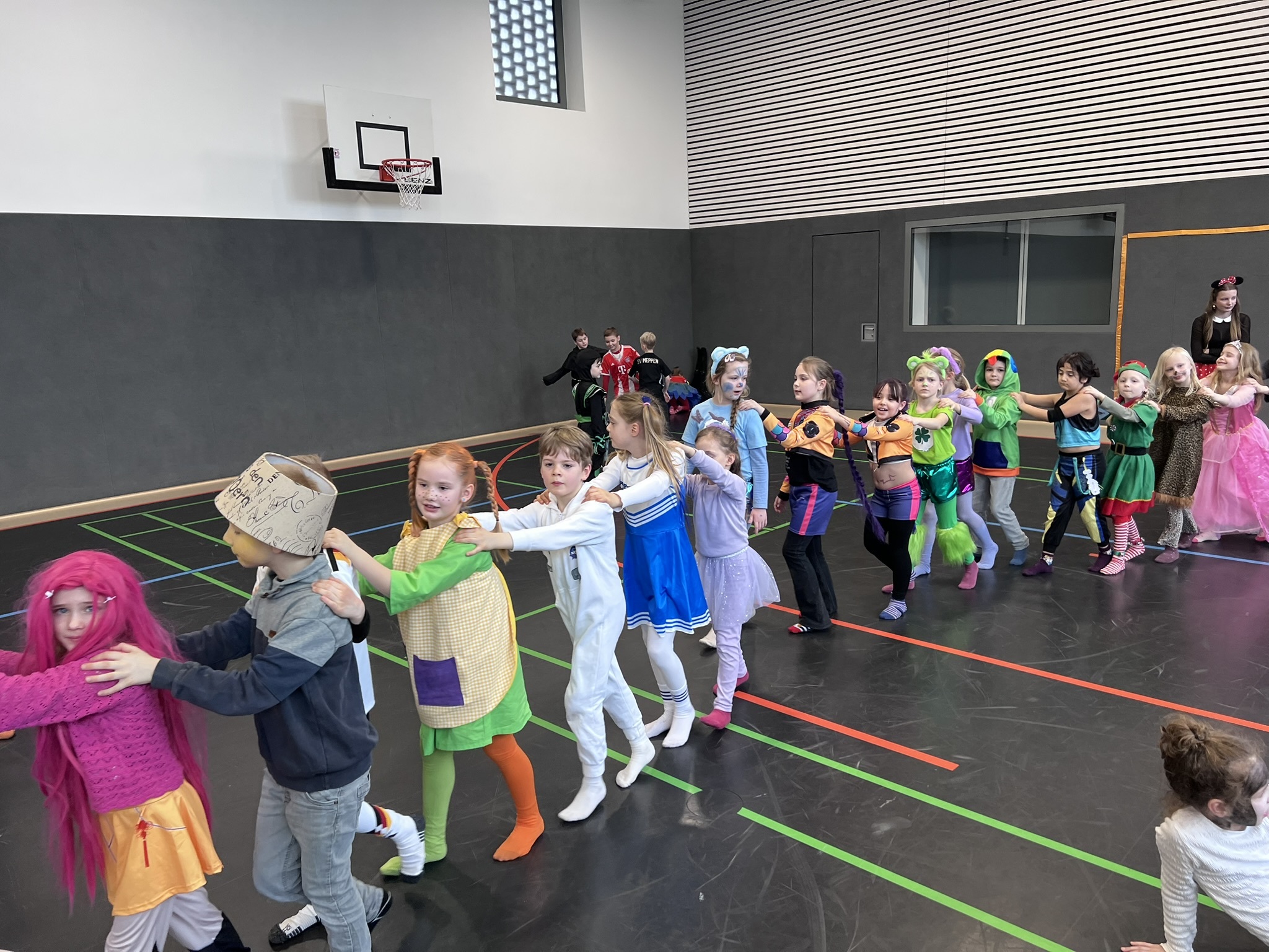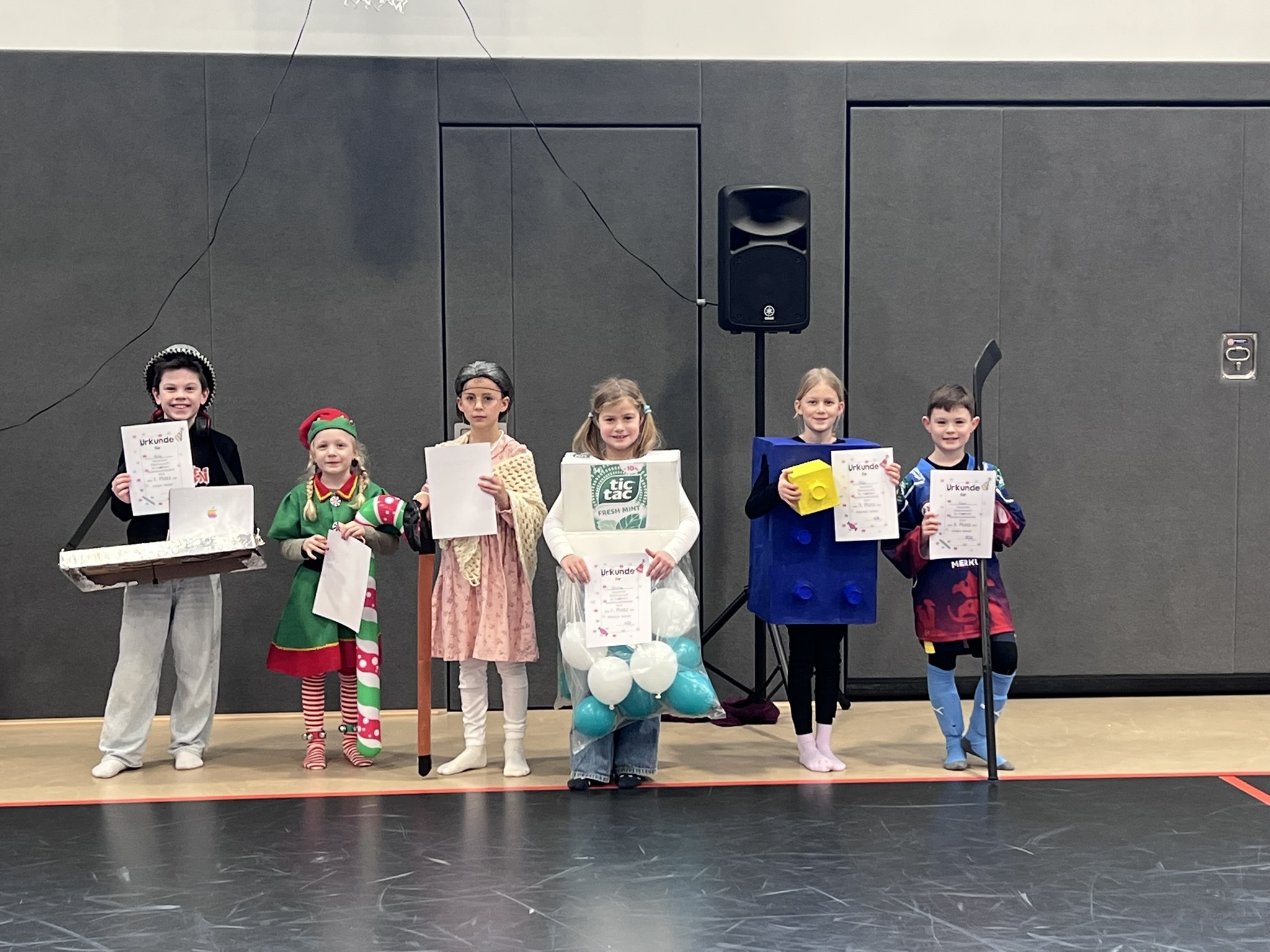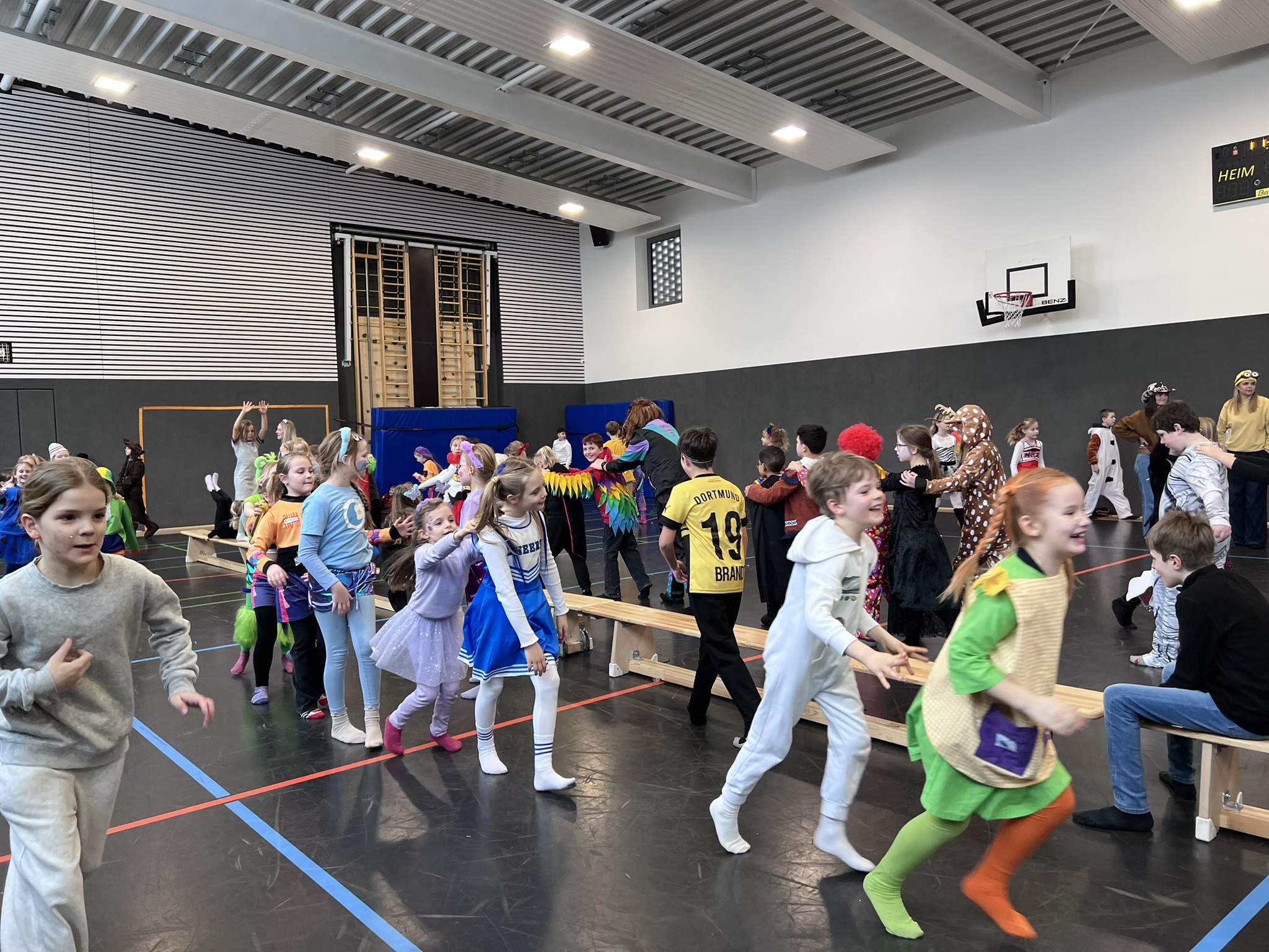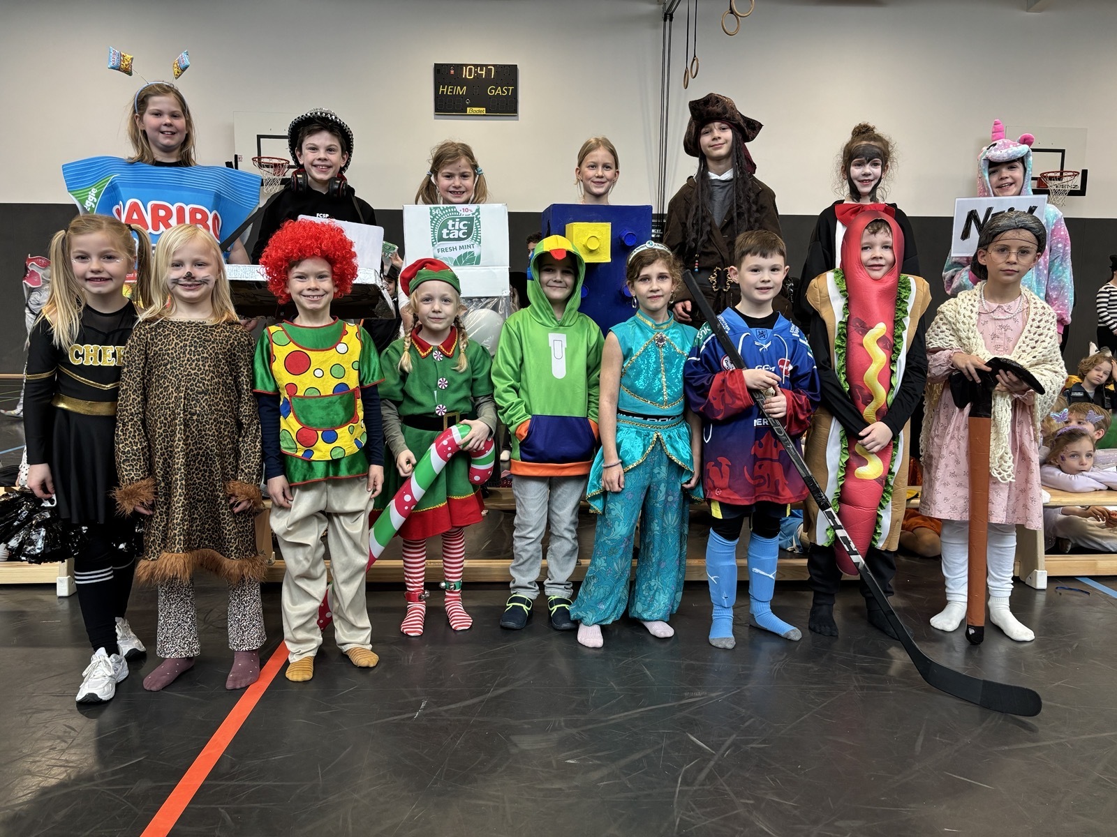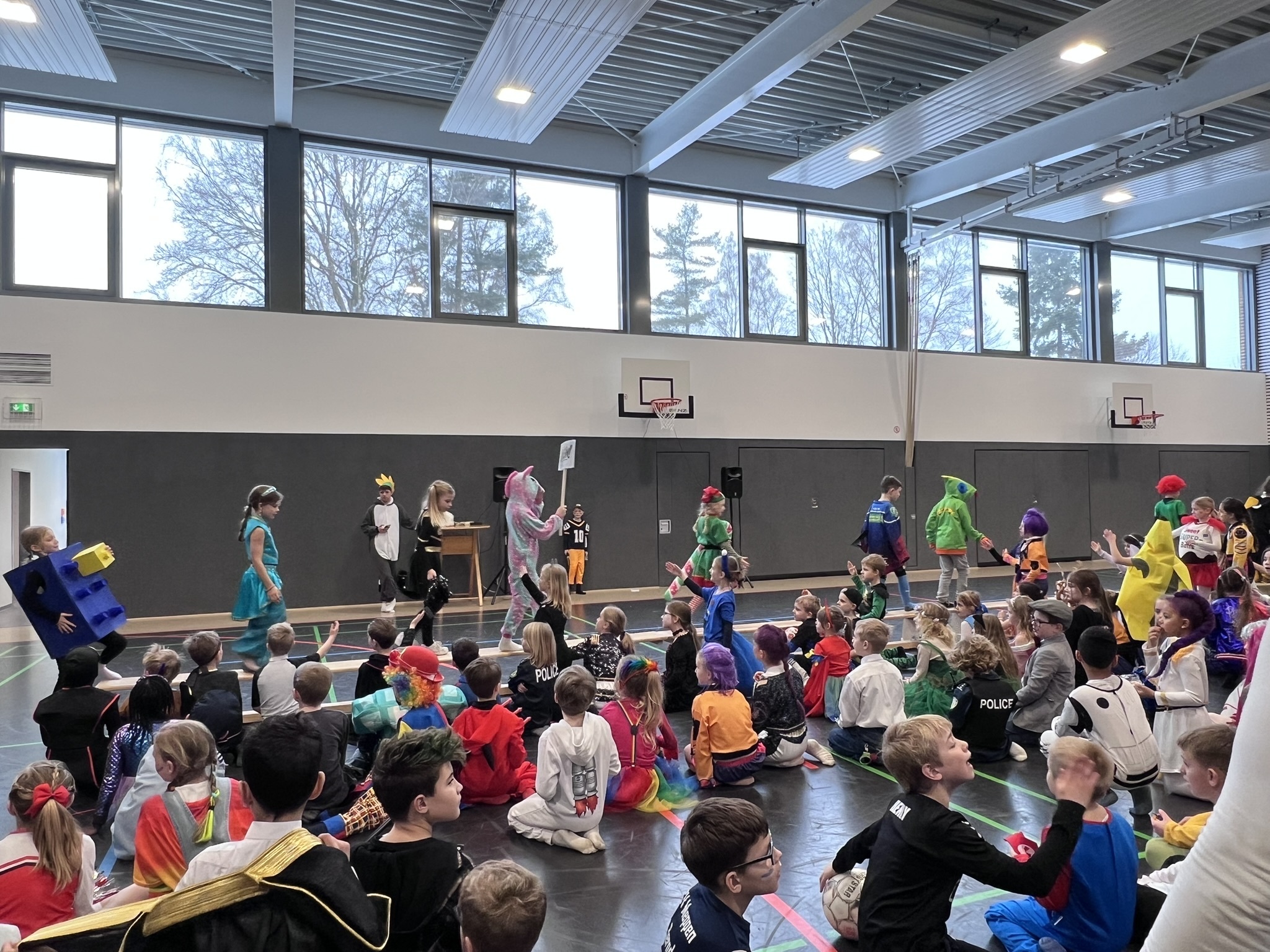 Nach dem Feiern in den Klassen ging es schließlich für alle Kinder gemeinsam in die Turnhalle. Dort wurde ausgelassen weitergefeiert, getanzt und gelacht. Zum krönenden Abschluss fand die große Kostümprämierung der gesamten Schule statt, bei der die besten Kostüme ausgewählt und besonders geehrt wurden.