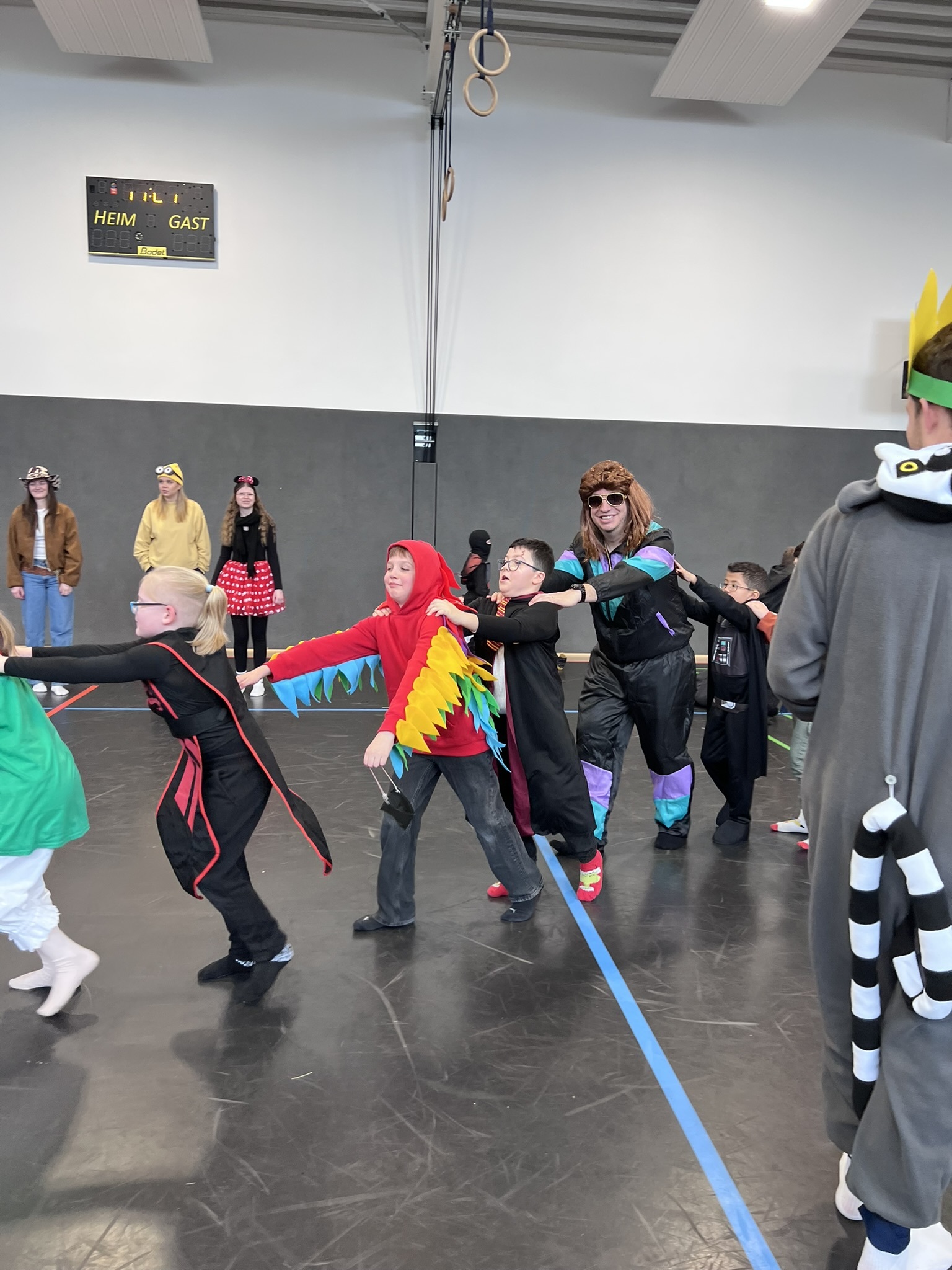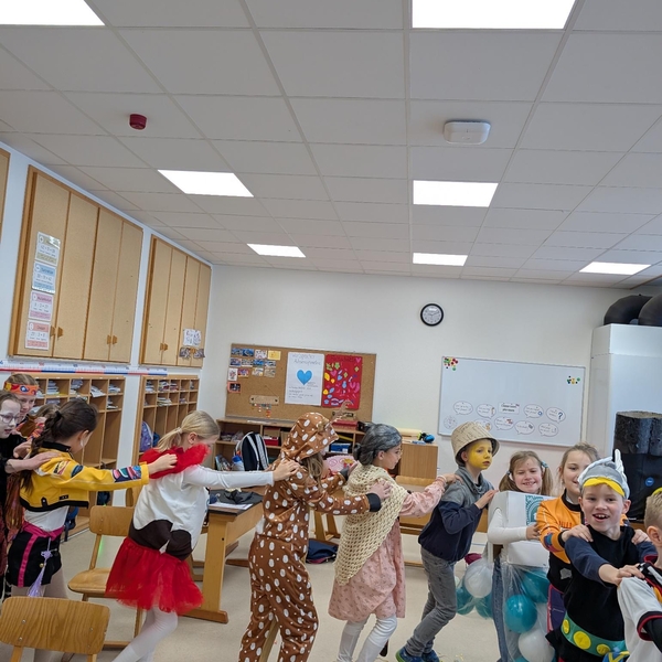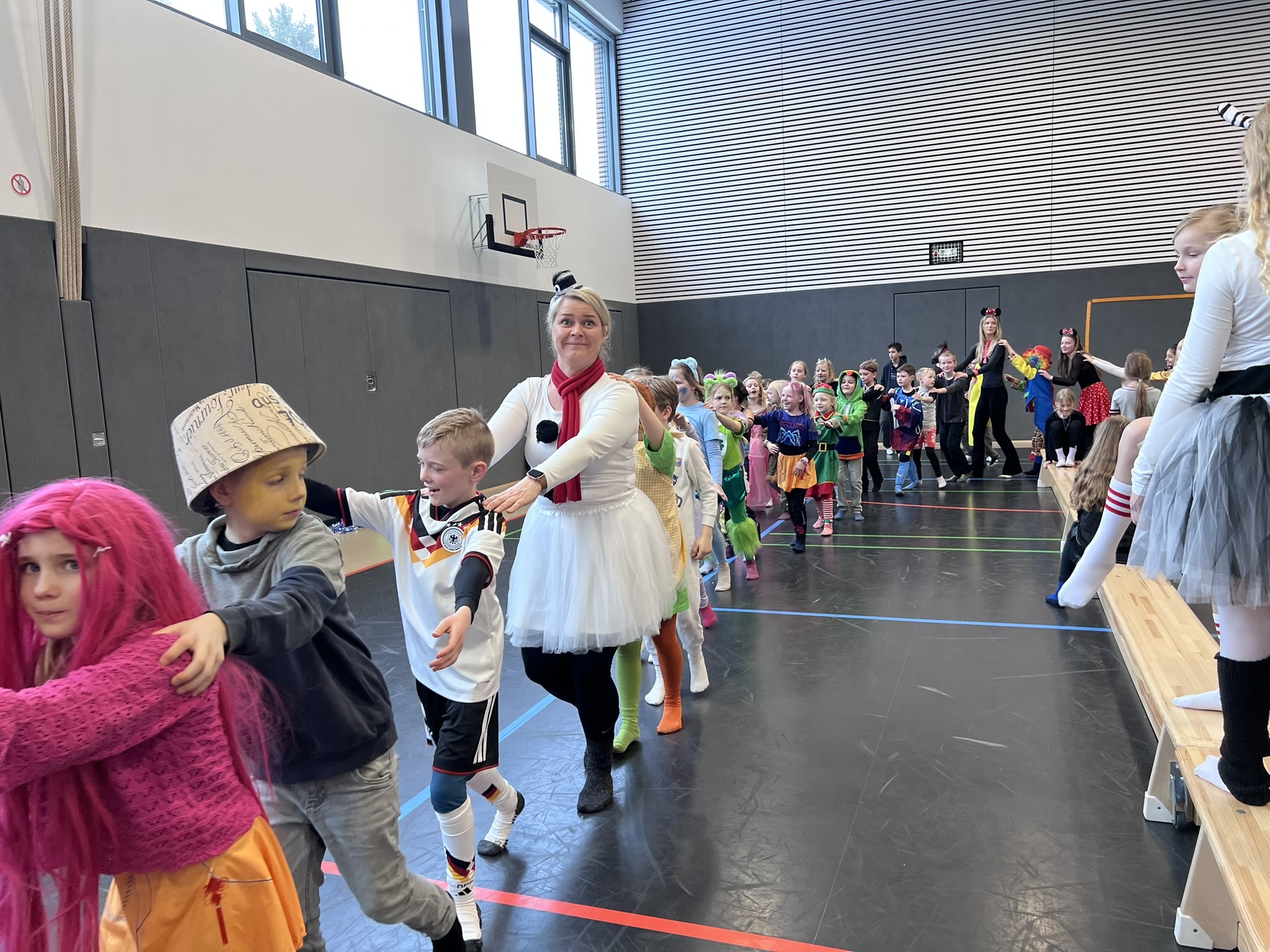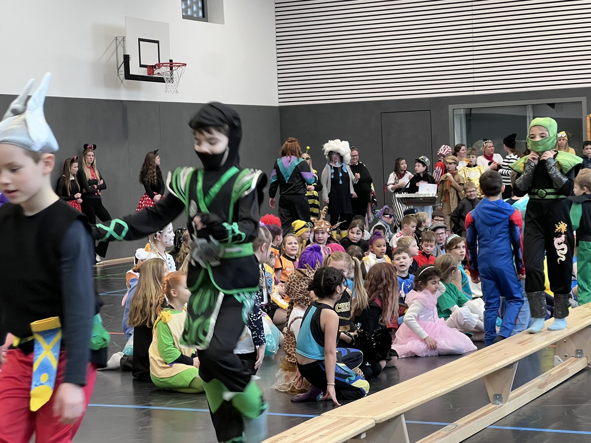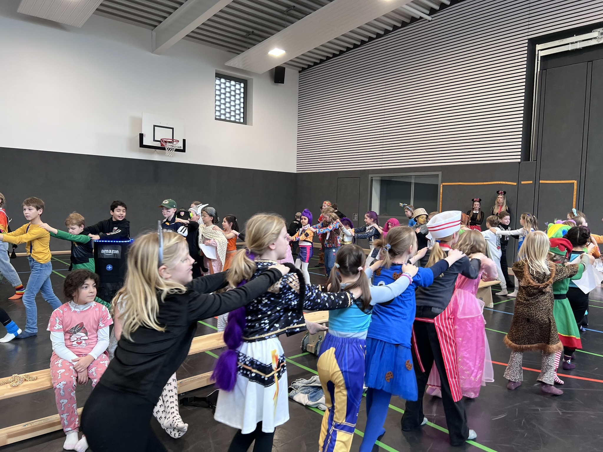 Nach dem Feiern in den Klassen ging es schließlich für alle Kinder gemeinsam in die Turnhalle. Dort wurde ausgelassen weitergefeiert, getanzt und gelacht. Zum krönenden Abschluss fand die große Kostümprämierung der gesamten Schule statt, bei der die besten Kostüme ausgewählt und besonders geehrt wurden.