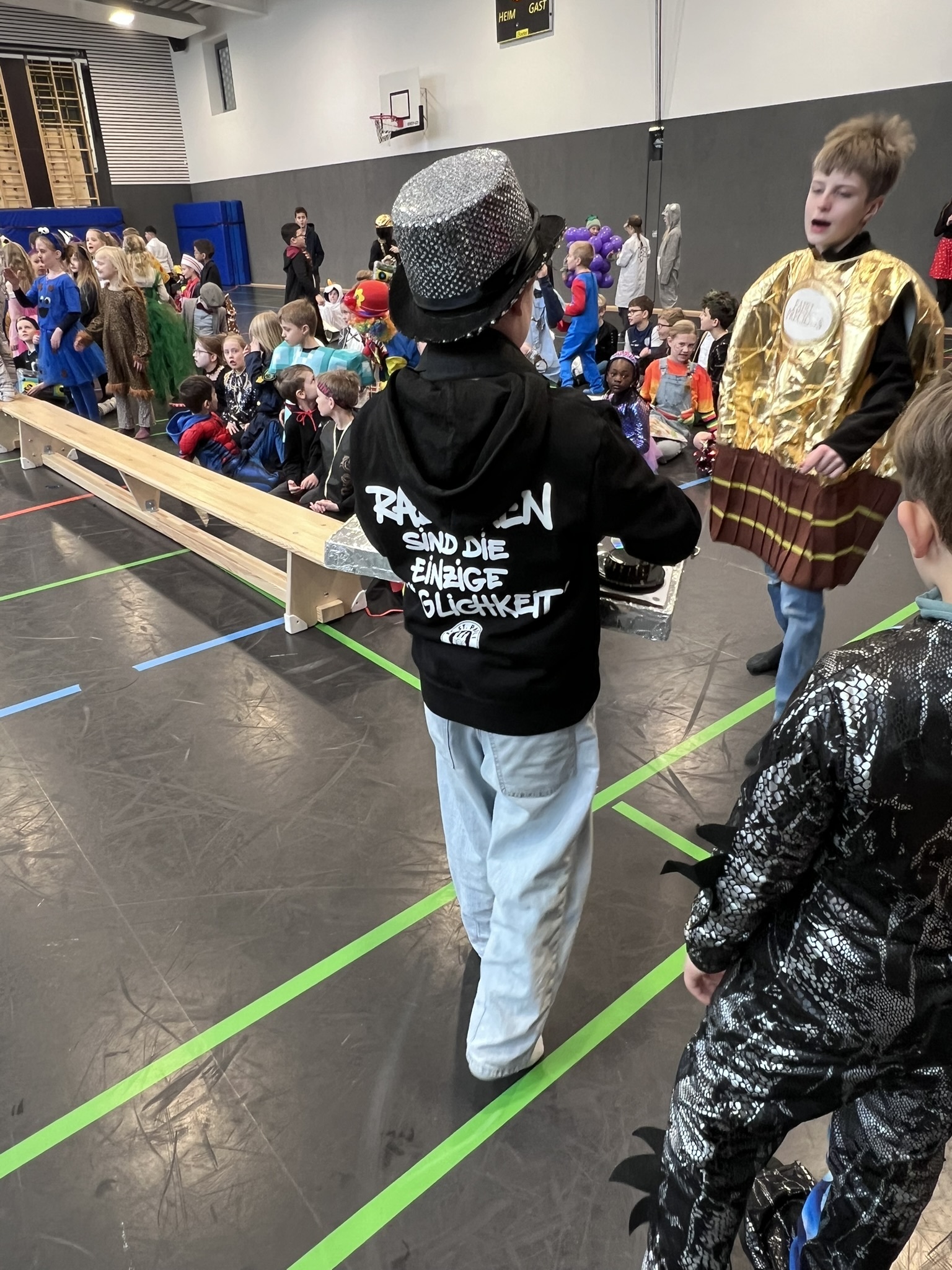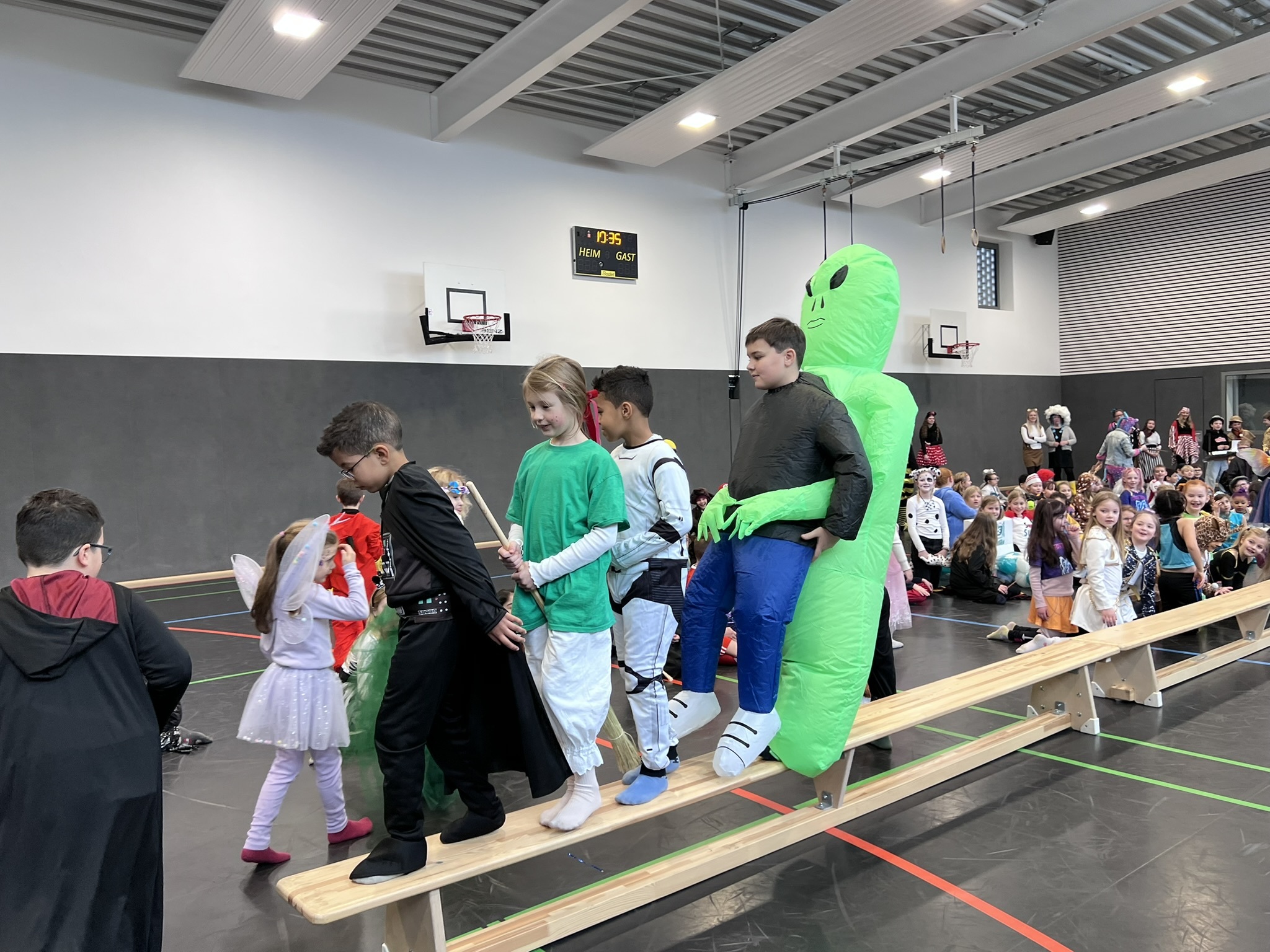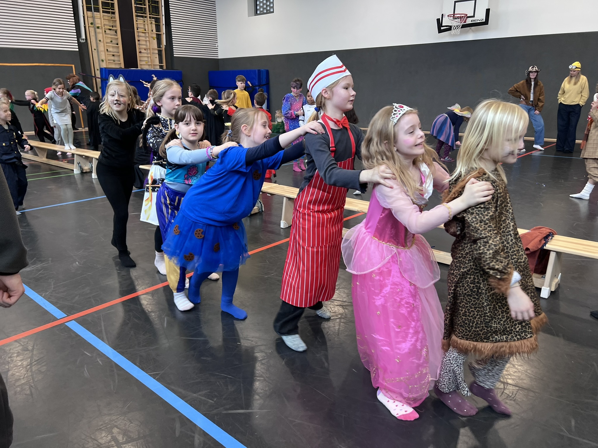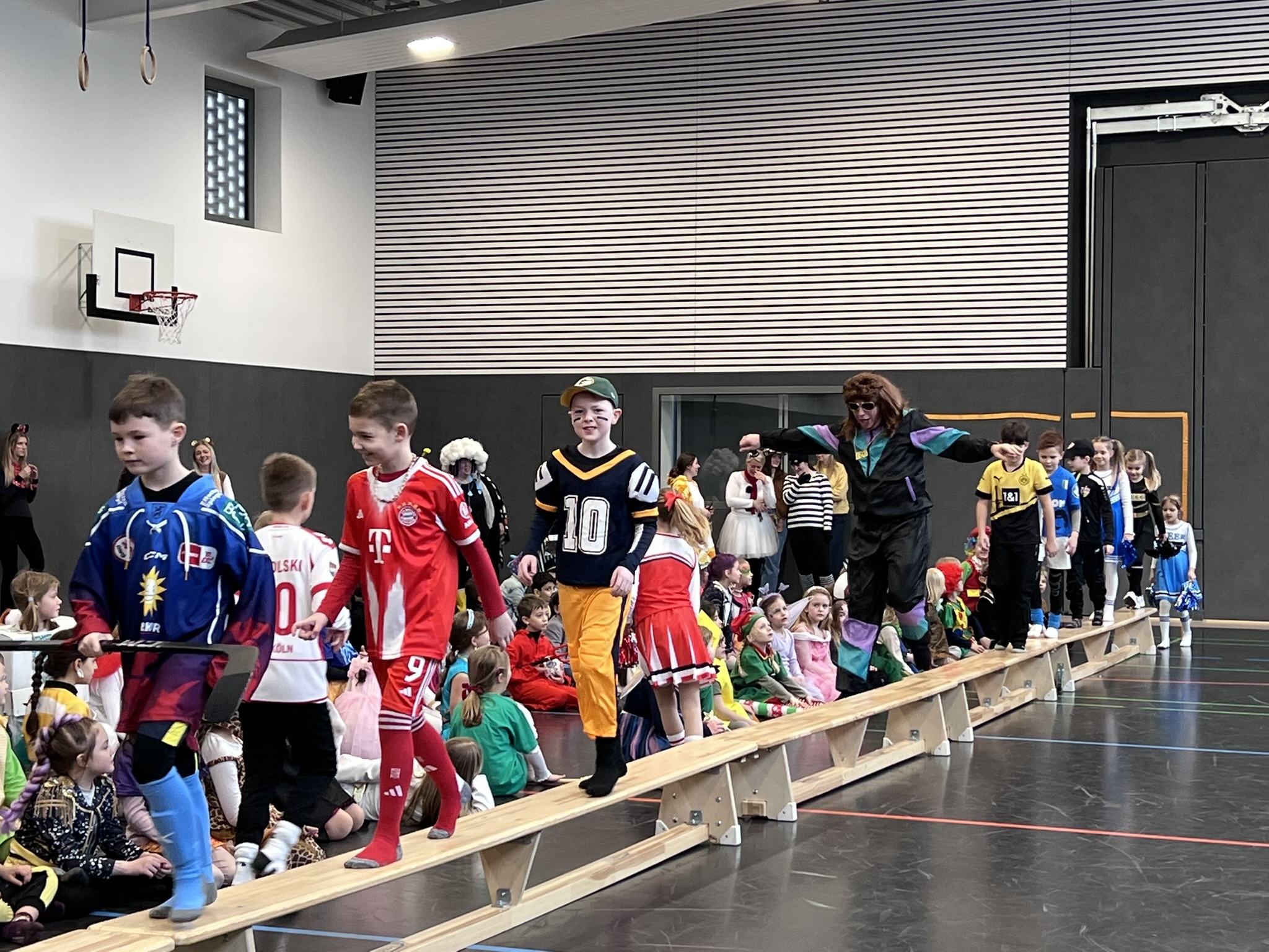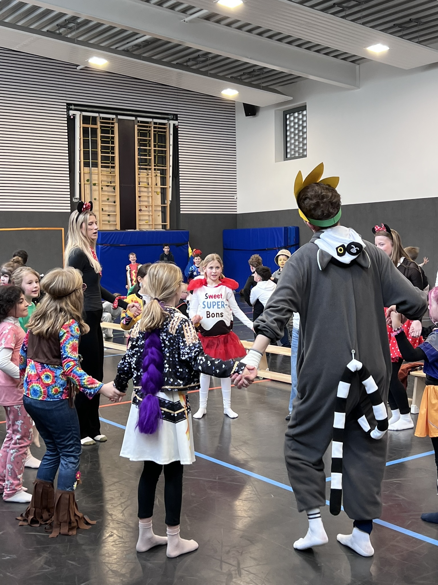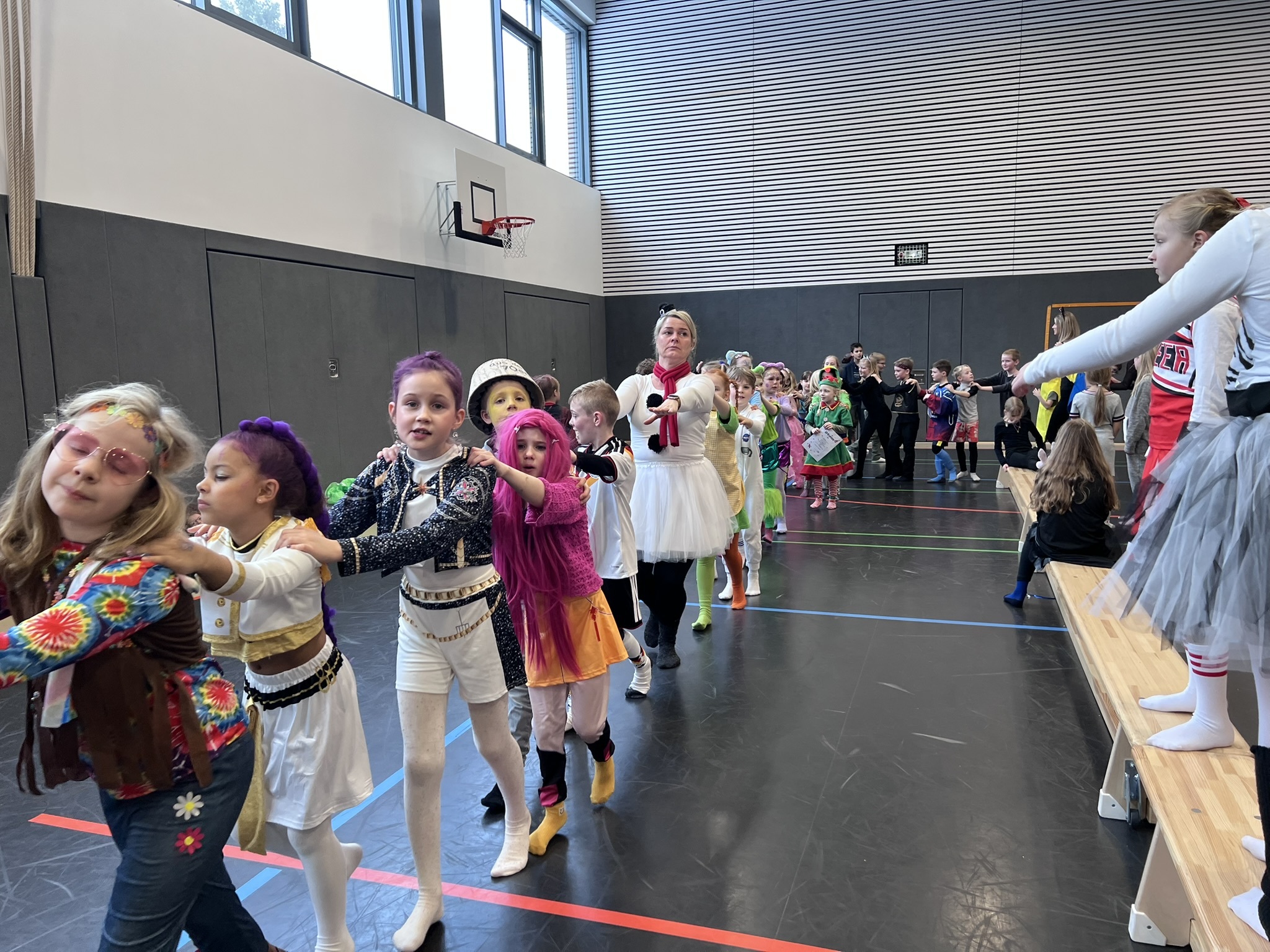 Nach dem Feiern in den Klassen ging es schließlich für alle Kinder gemeinsam in die Turnhalle. Dort wurde ausgelassen weitergefeiert, getanzt und gelacht. Zum krönenden Abschluss fand die große Kostümprämierung der gesamten Schule statt, bei der die besten Kostüme ausgewählt und besonders geehrt wurden.