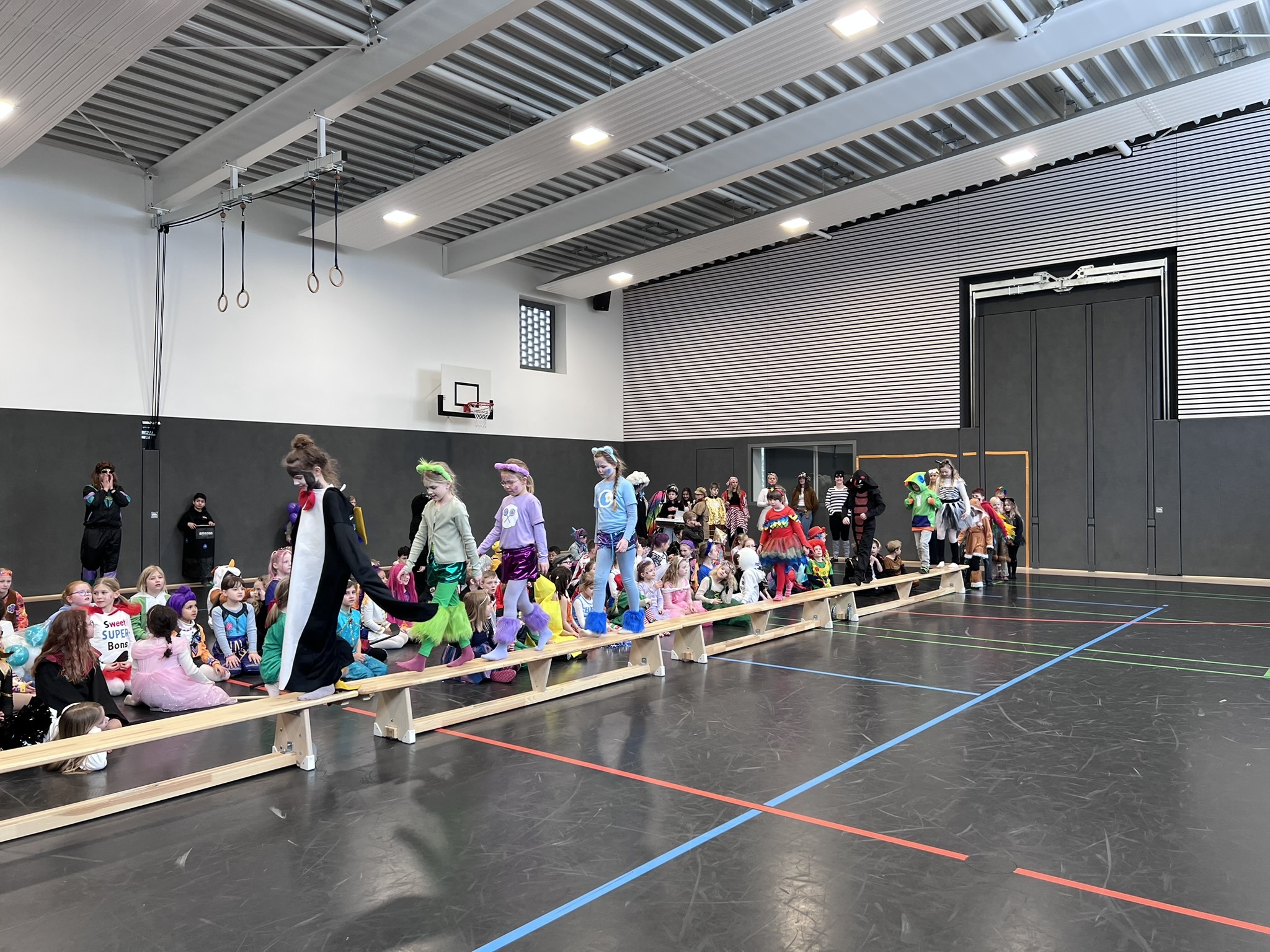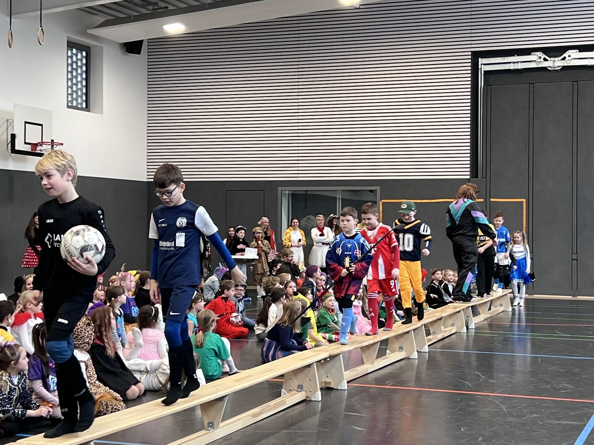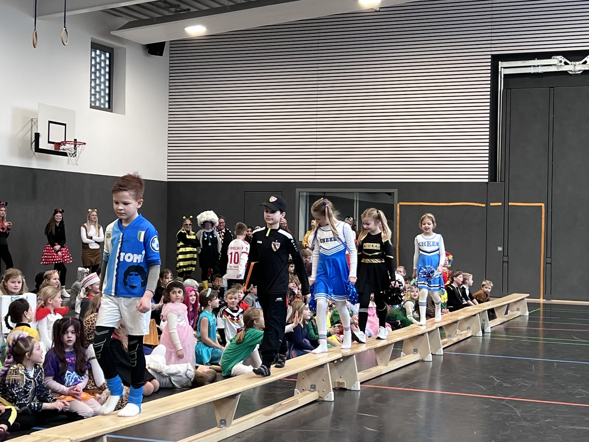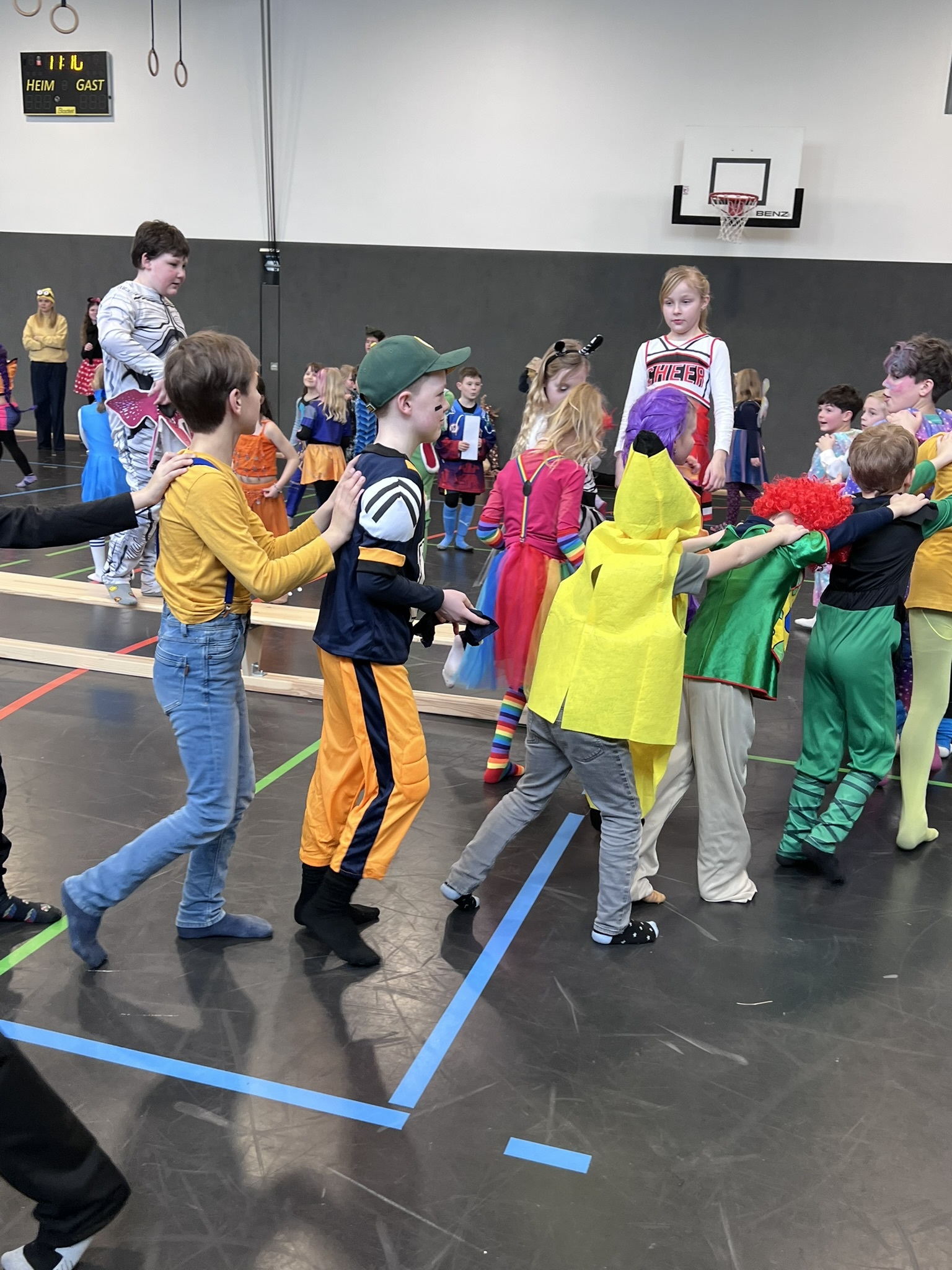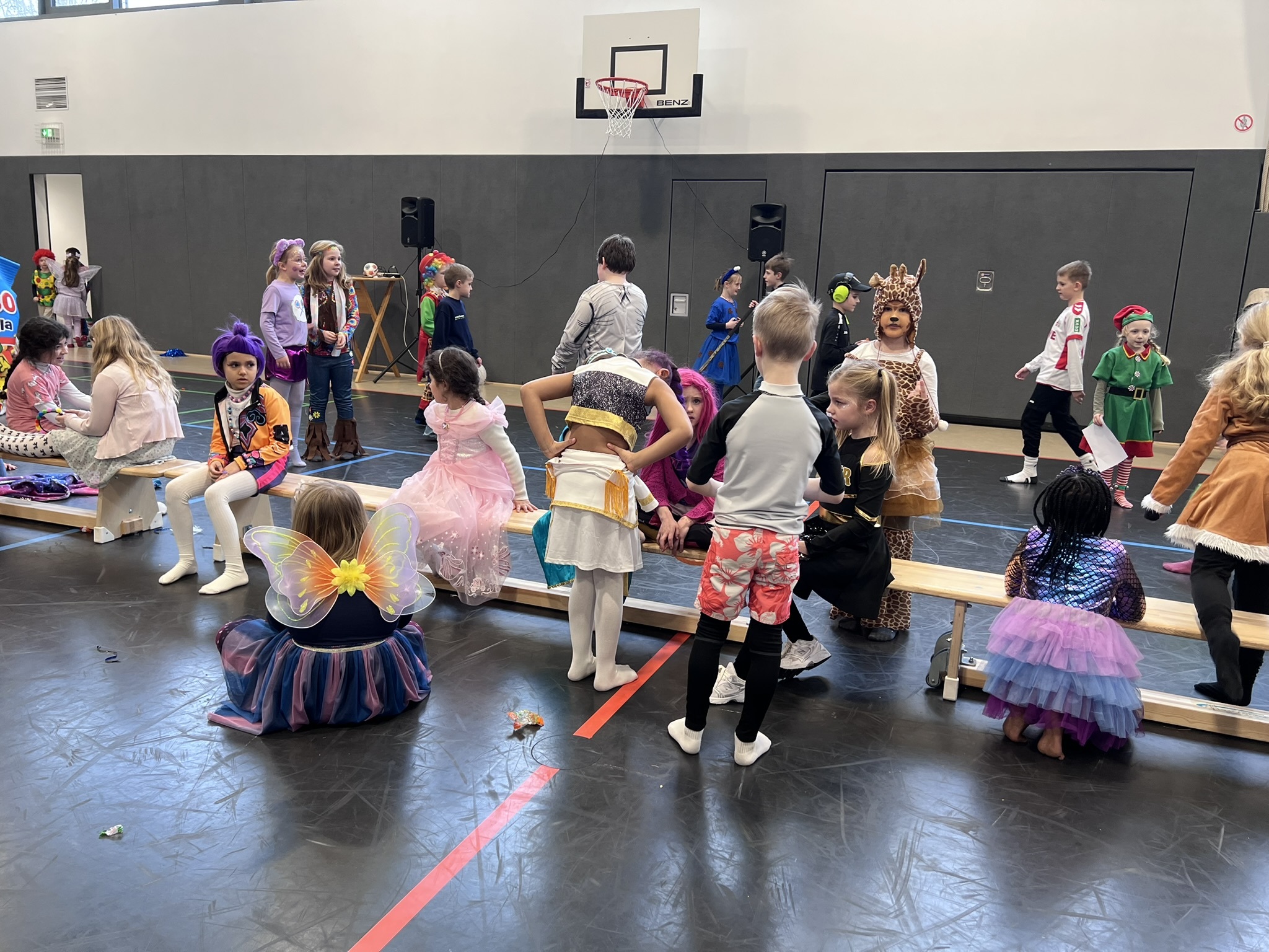 Nach dem Feiern in den Klassen ging es schließlich für alle Kinder gemeinsam in die Turnhalle. Dort wurde ausgelassen weitergefeiert, getanzt und gelacht. Zum krönenden Abschluss fand die große Kostümprämierung der gesamten Schule statt, bei der die besten Kostüme ausgewählt und besonders geehrt wurden.