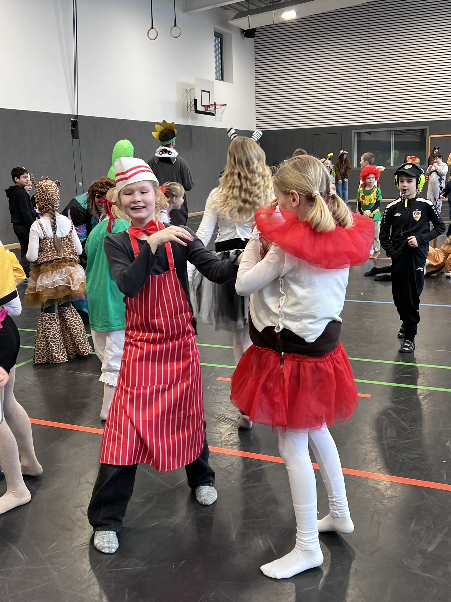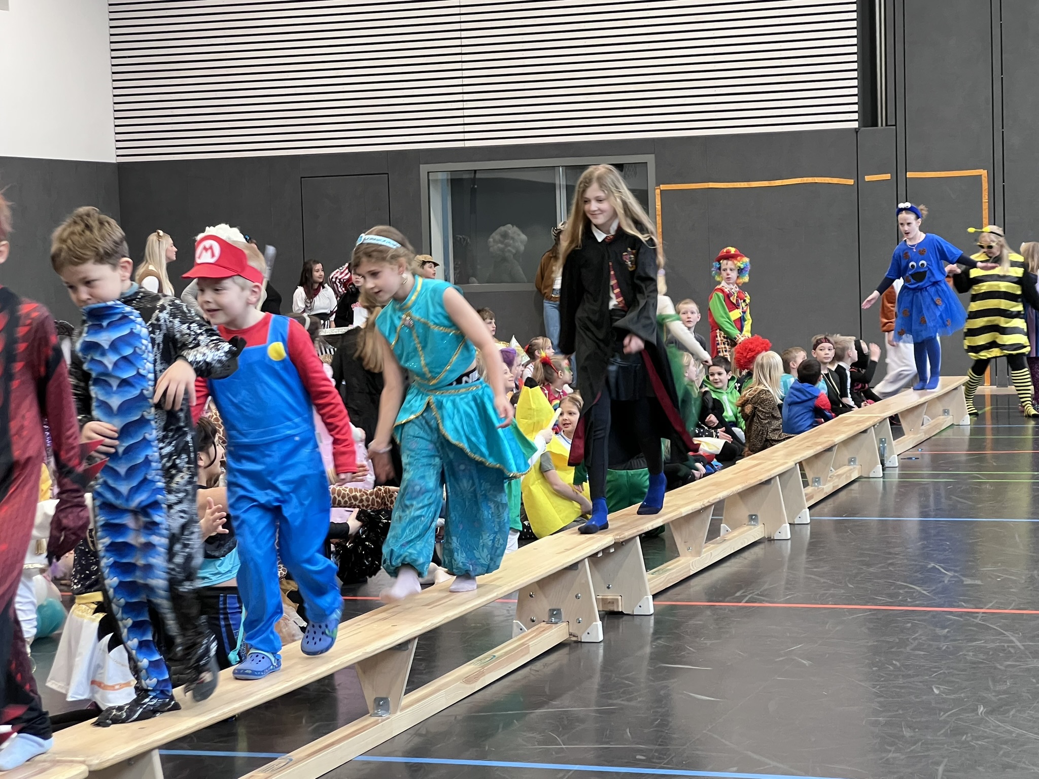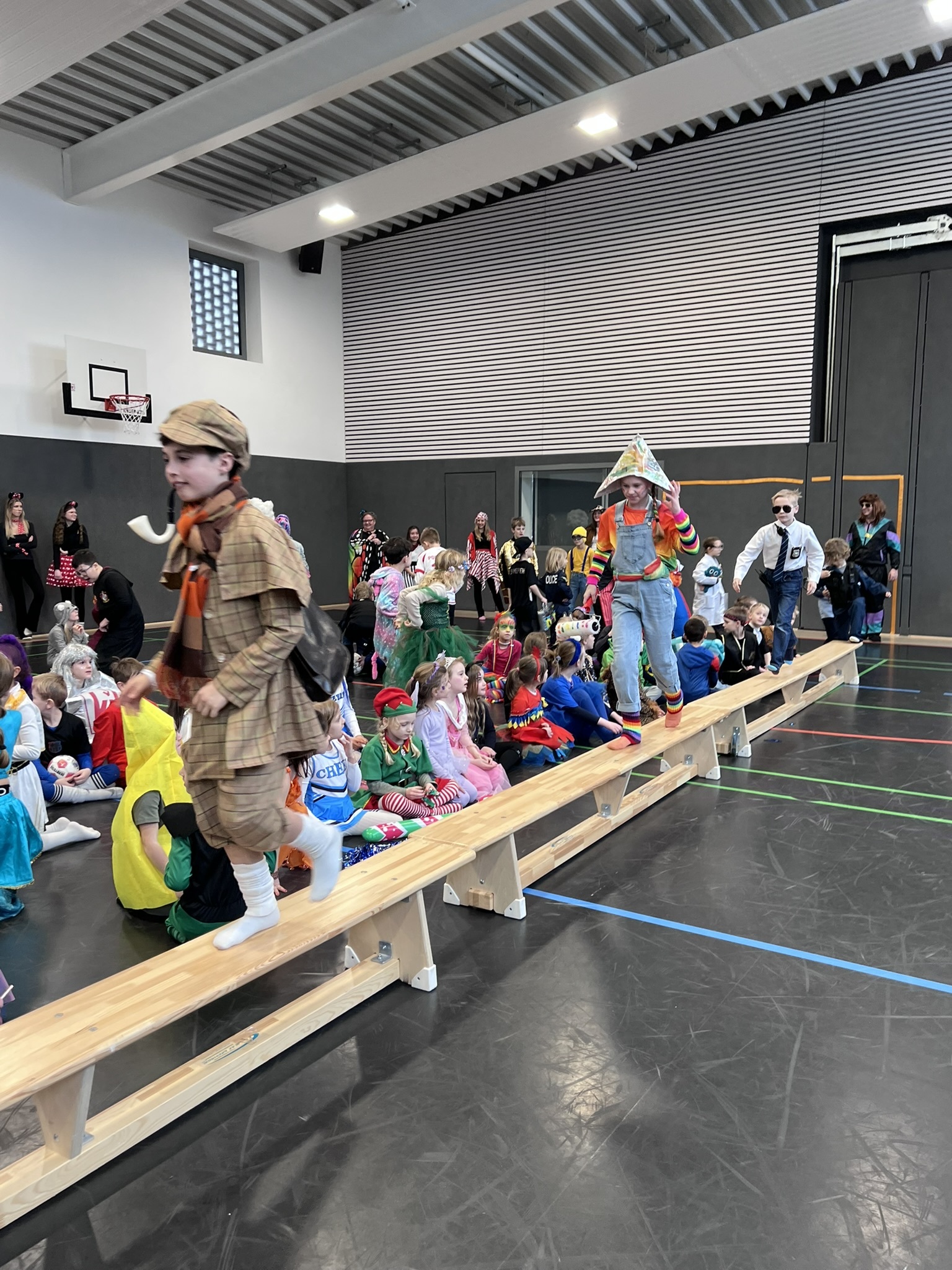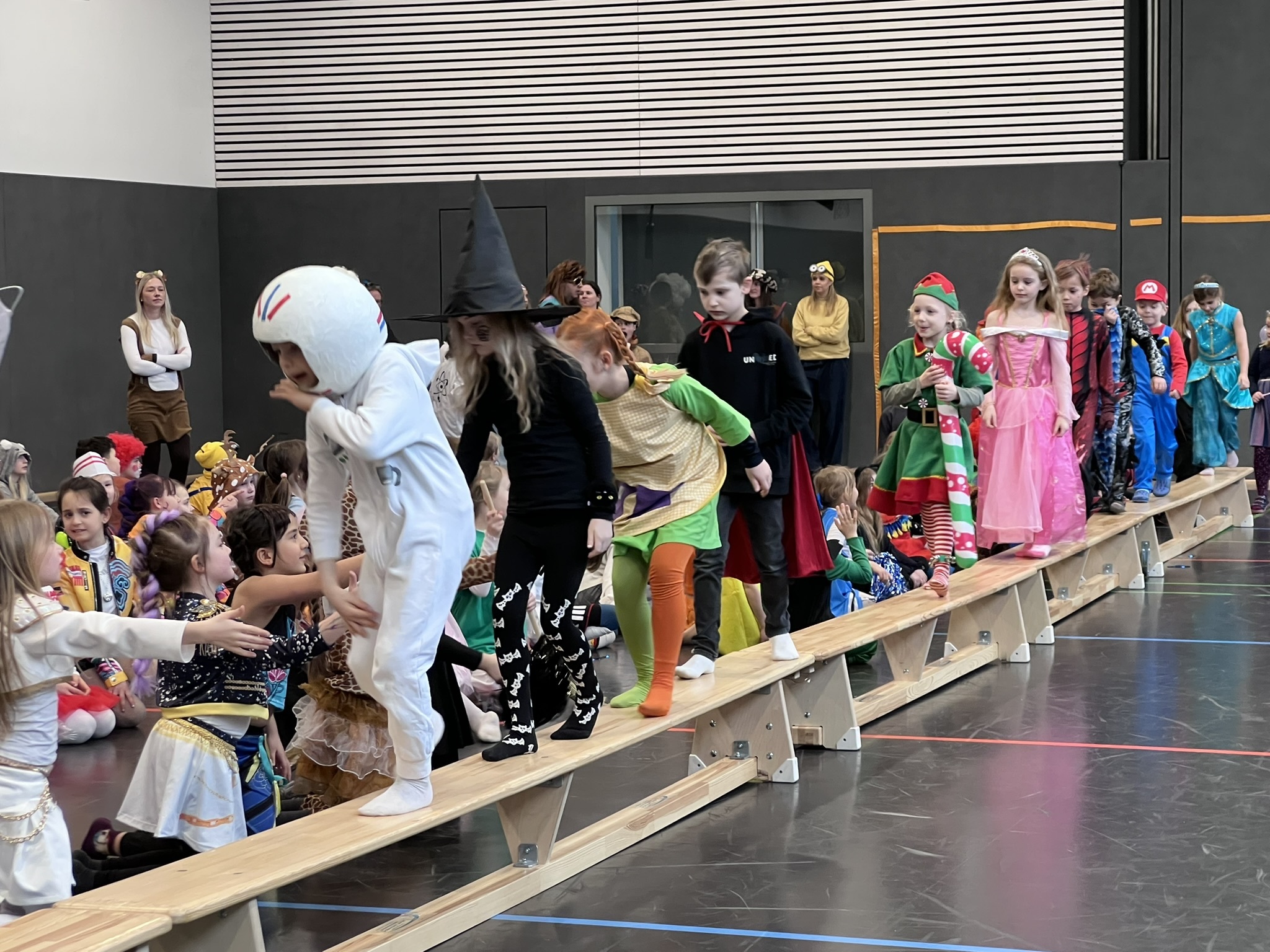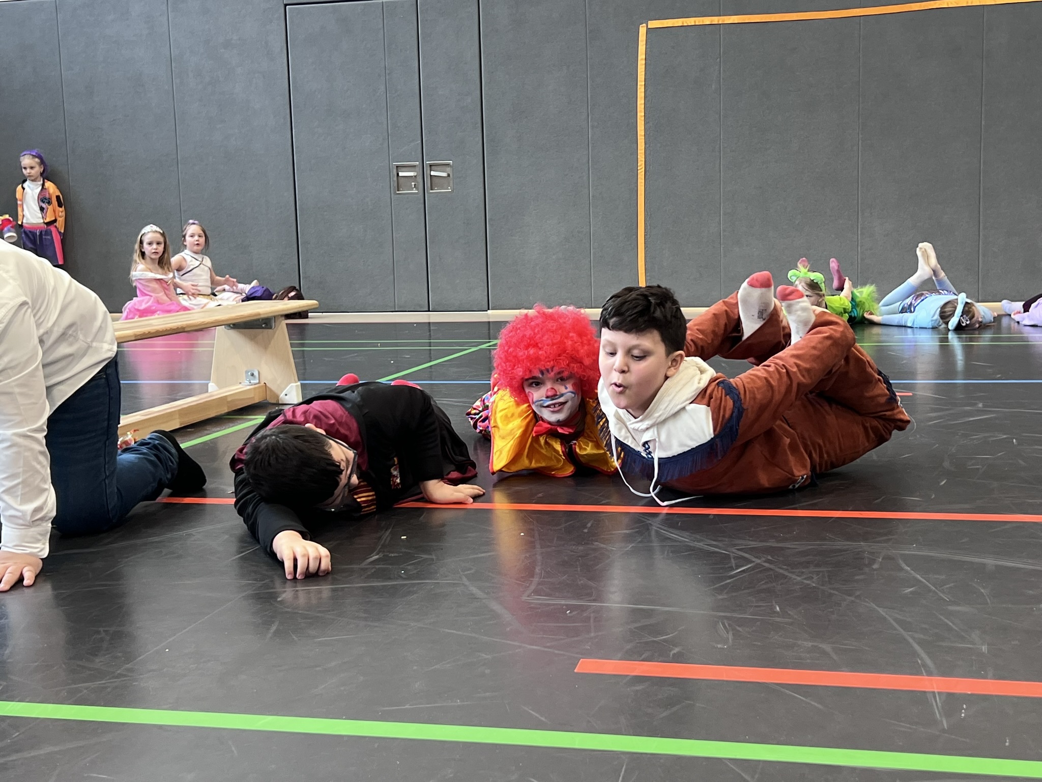 Nach dem Feiern in den Klassen ging es schließlich für alle Kinder gemeinsam in die Turnhalle. Dort wurde ausgelassen weitergefeiert, getanzt und gelacht. Zum krönenden Abschluss fand die große Kostümprämierung der gesamten Schule statt, bei der die besten Kostüme ausgewählt und besonders geehrt wurden.