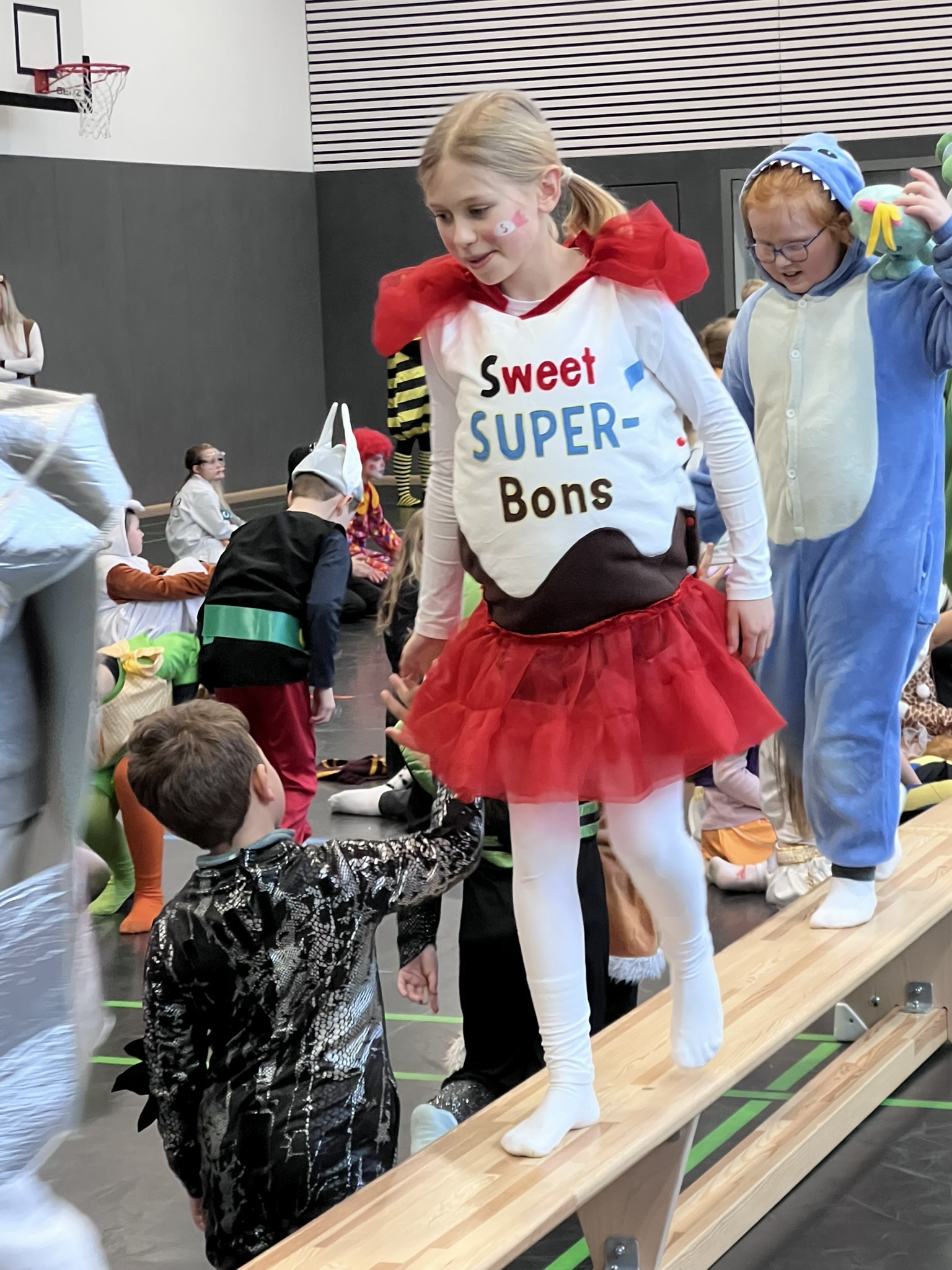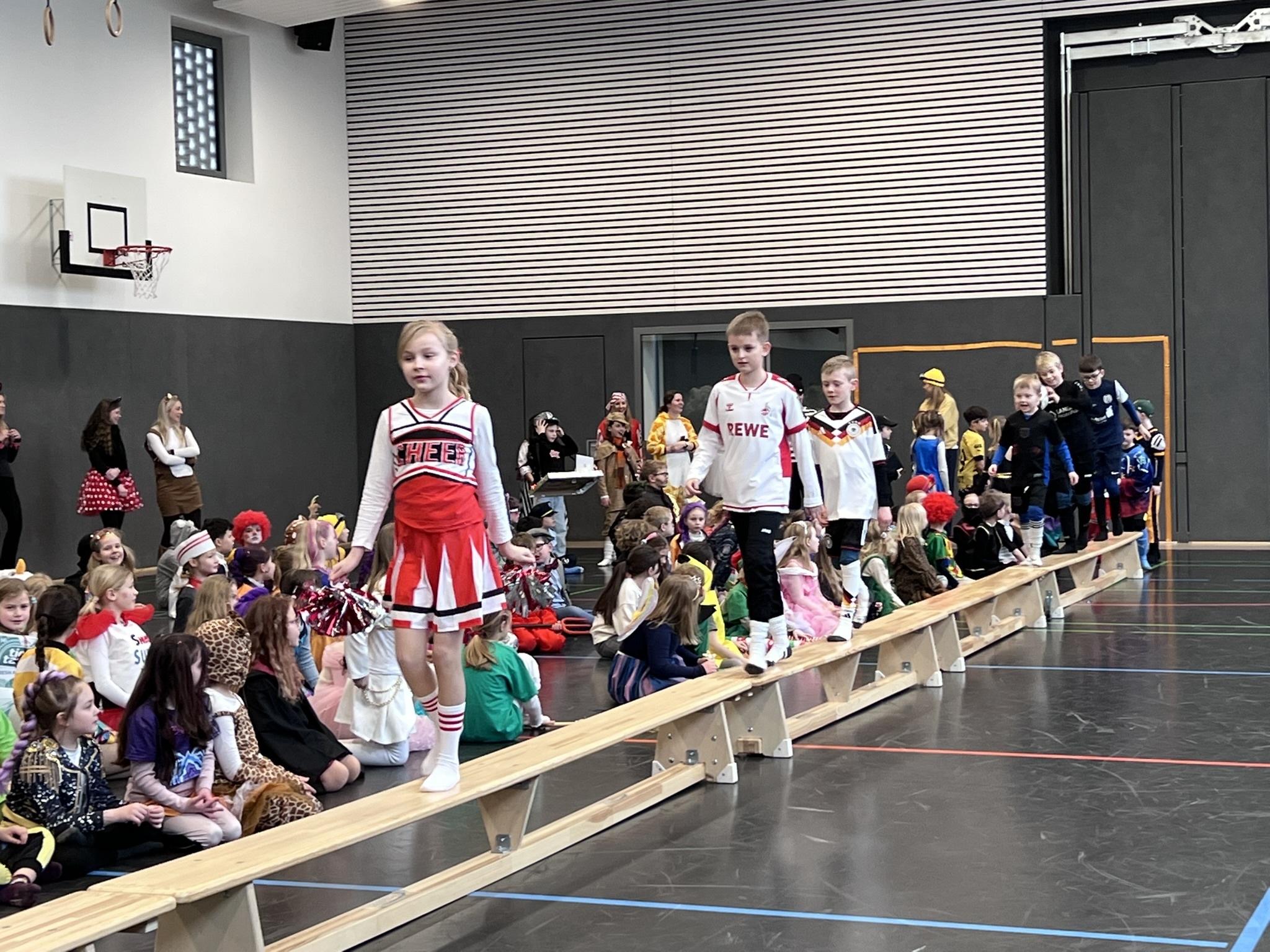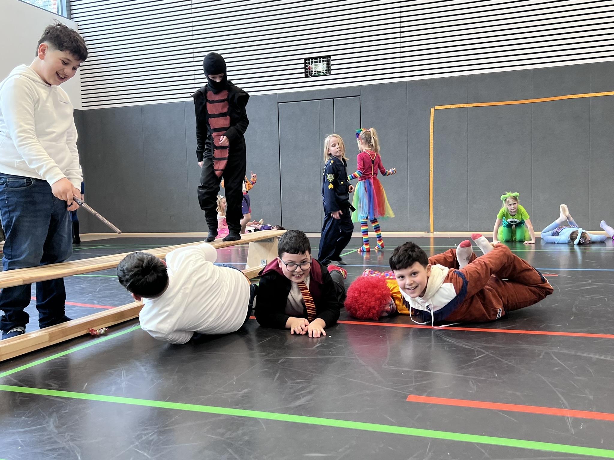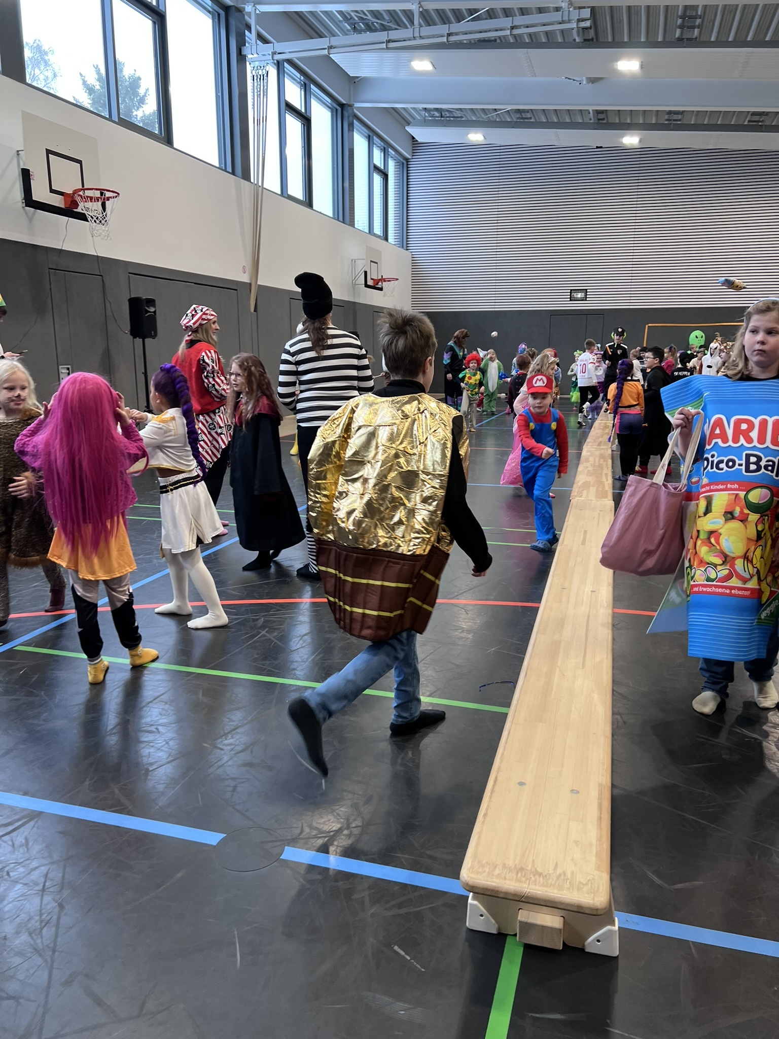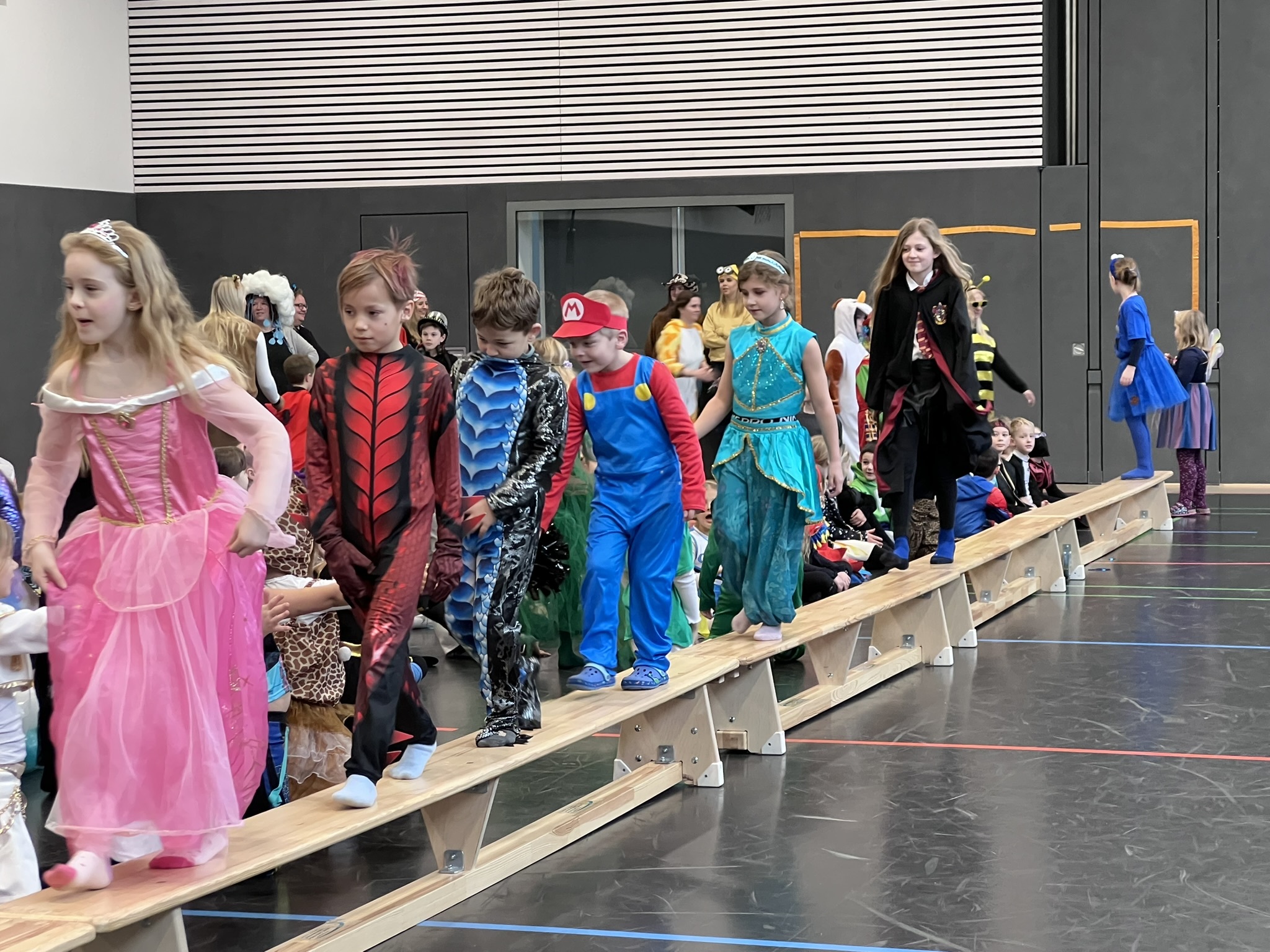 Nach dem Feiern in den Klassen ging es schließlich für alle Kinder gemeinsam in die Turnhalle. Dort wurde ausgelassen weitergefeiert, getanzt und gelacht. Zum krönenden Abschluss fand die große Kostümprämierung der gesamten Schule statt, bei der die besten Kostüme ausgewählt und besonders geehrt wurden.