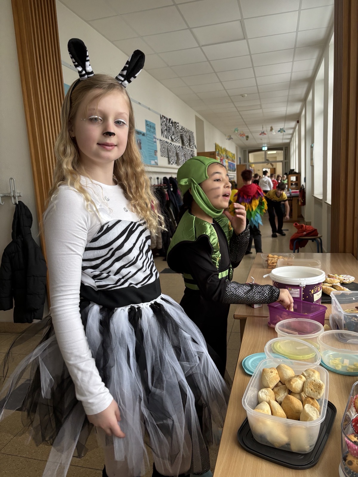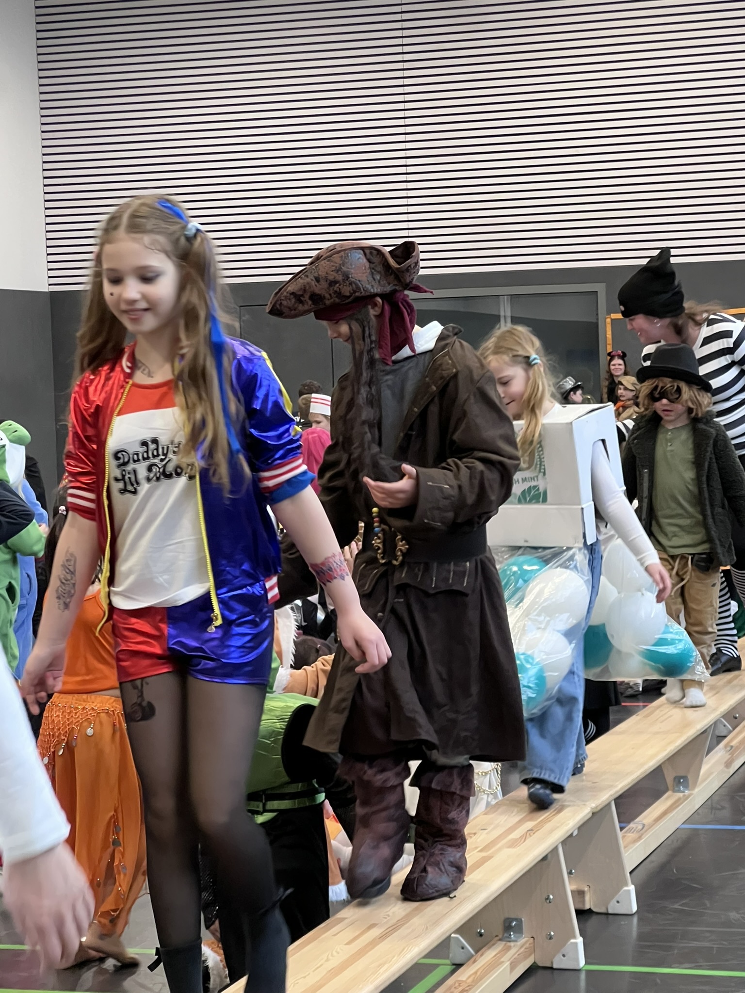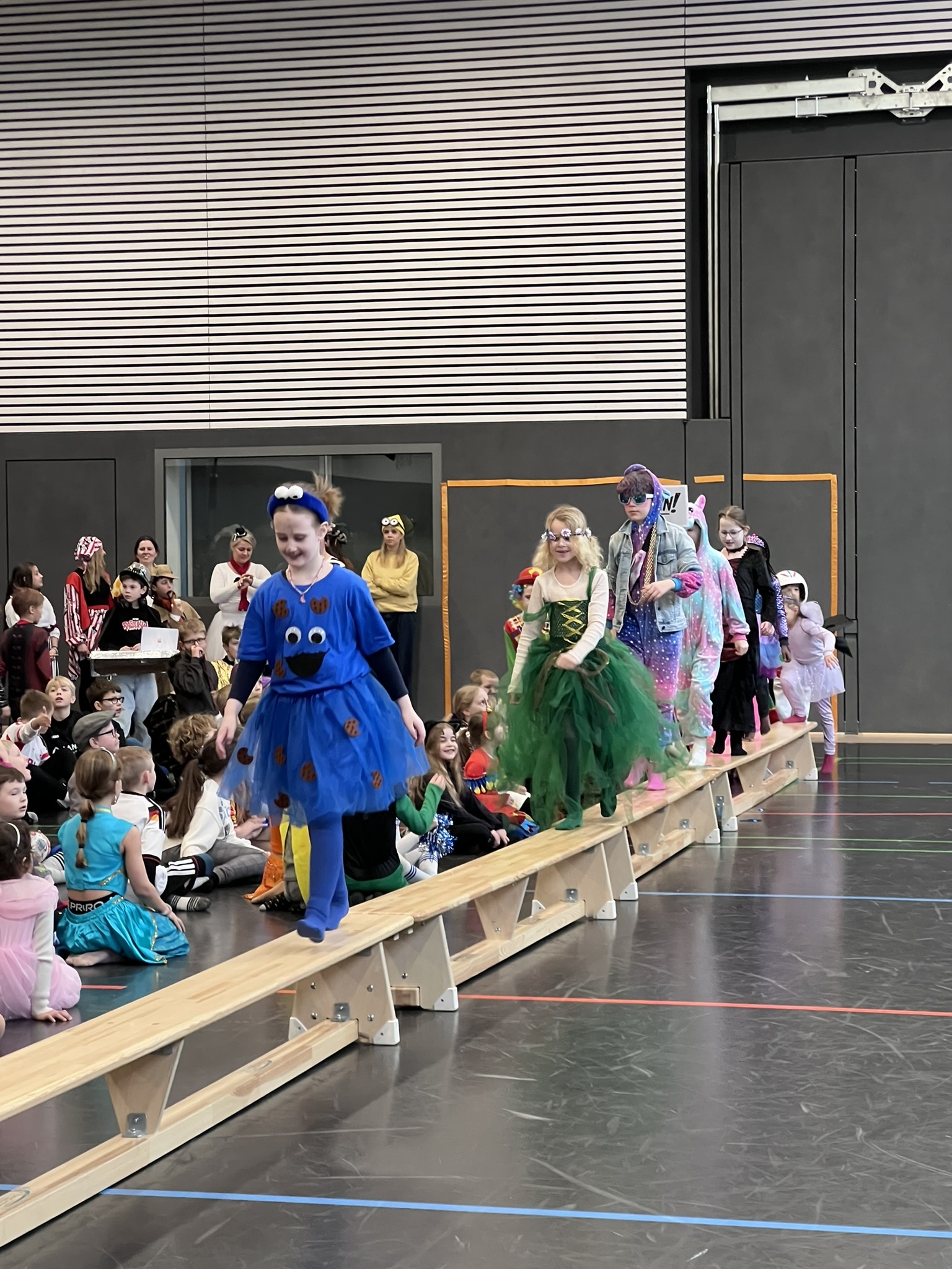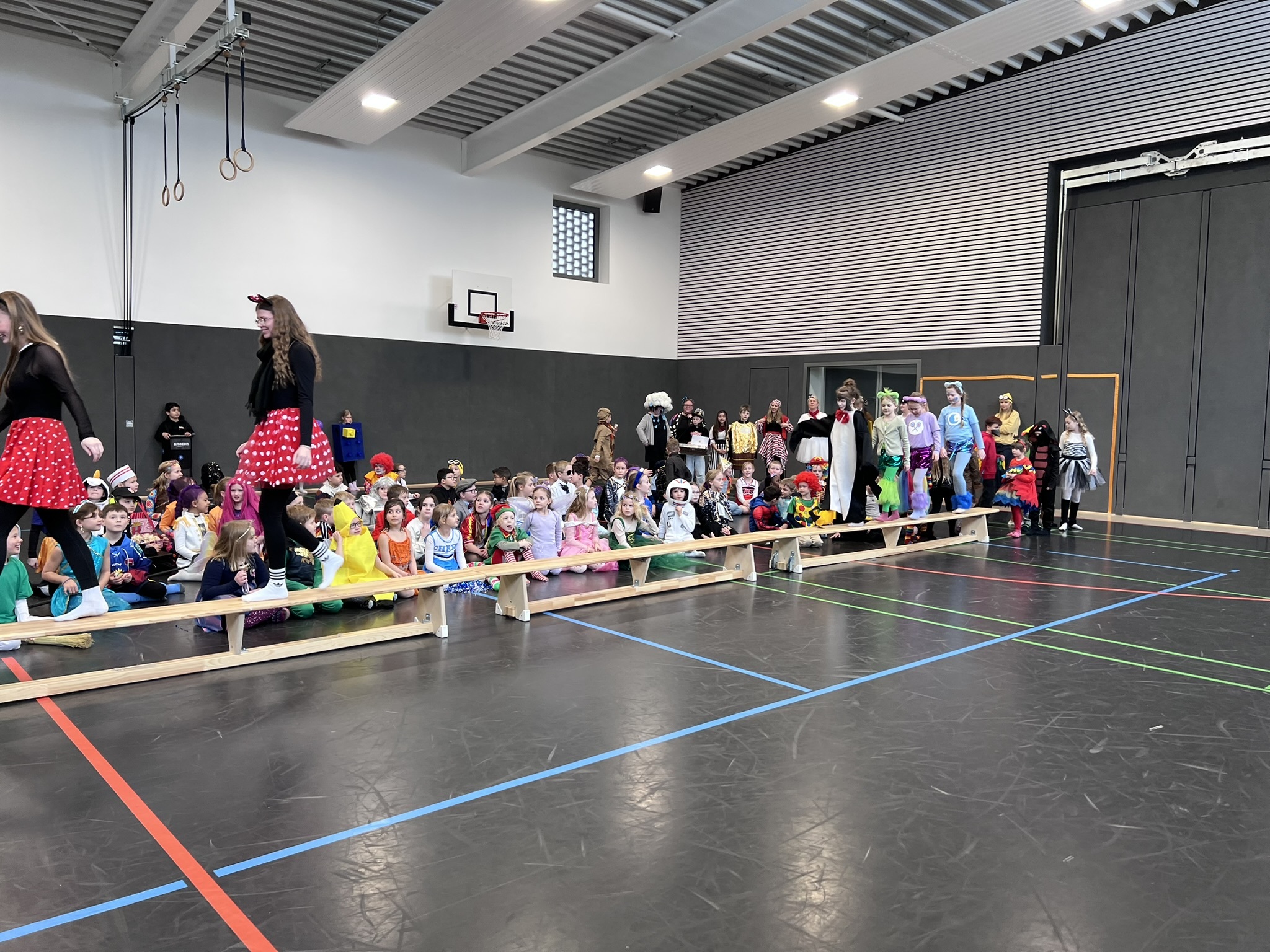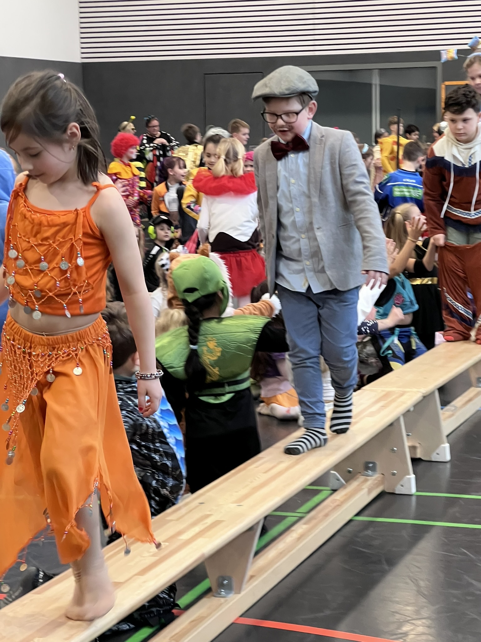 Nach dem Feiern in den Klassen ging es schließlich für alle Kinder gemeinsam in die Turnhalle. Dort wurde ausgelassen weitergefeiert, getanzt und gelacht. Zum krönenden Abschluss fand die große Kostümprämierung der gesamten Schule statt, bei der die besten Kostüme ausgewählt und besonders geehrt wurden.