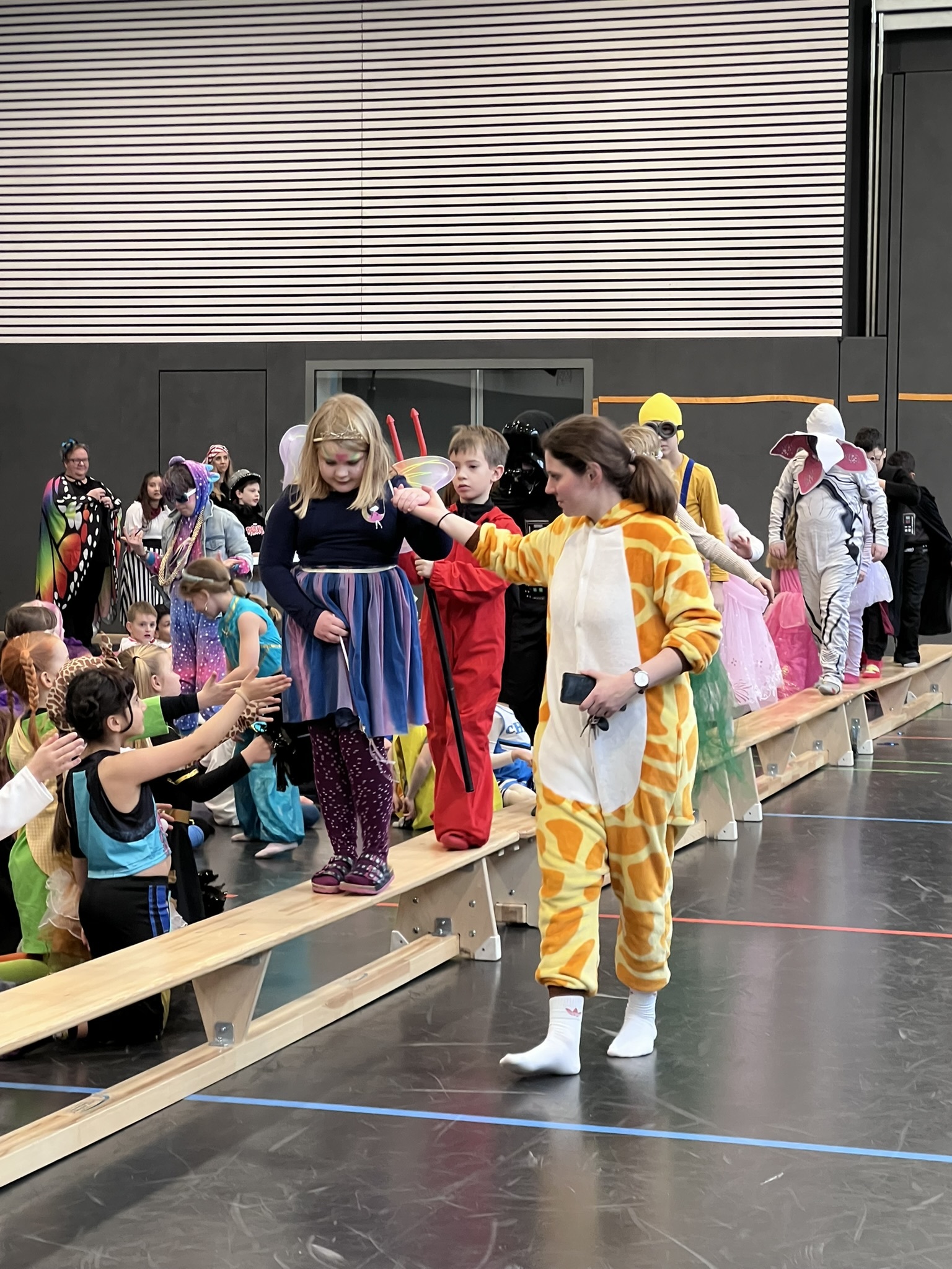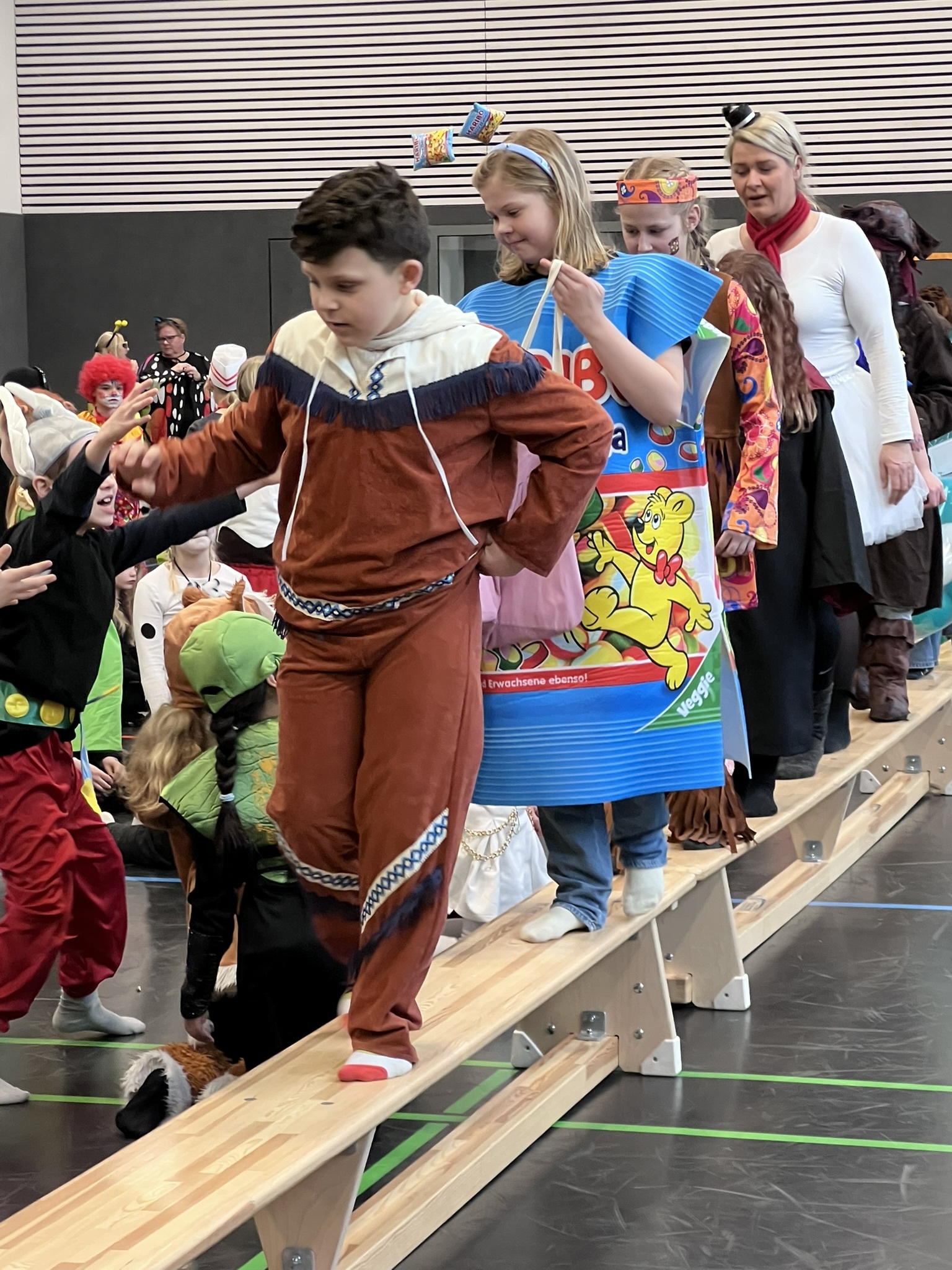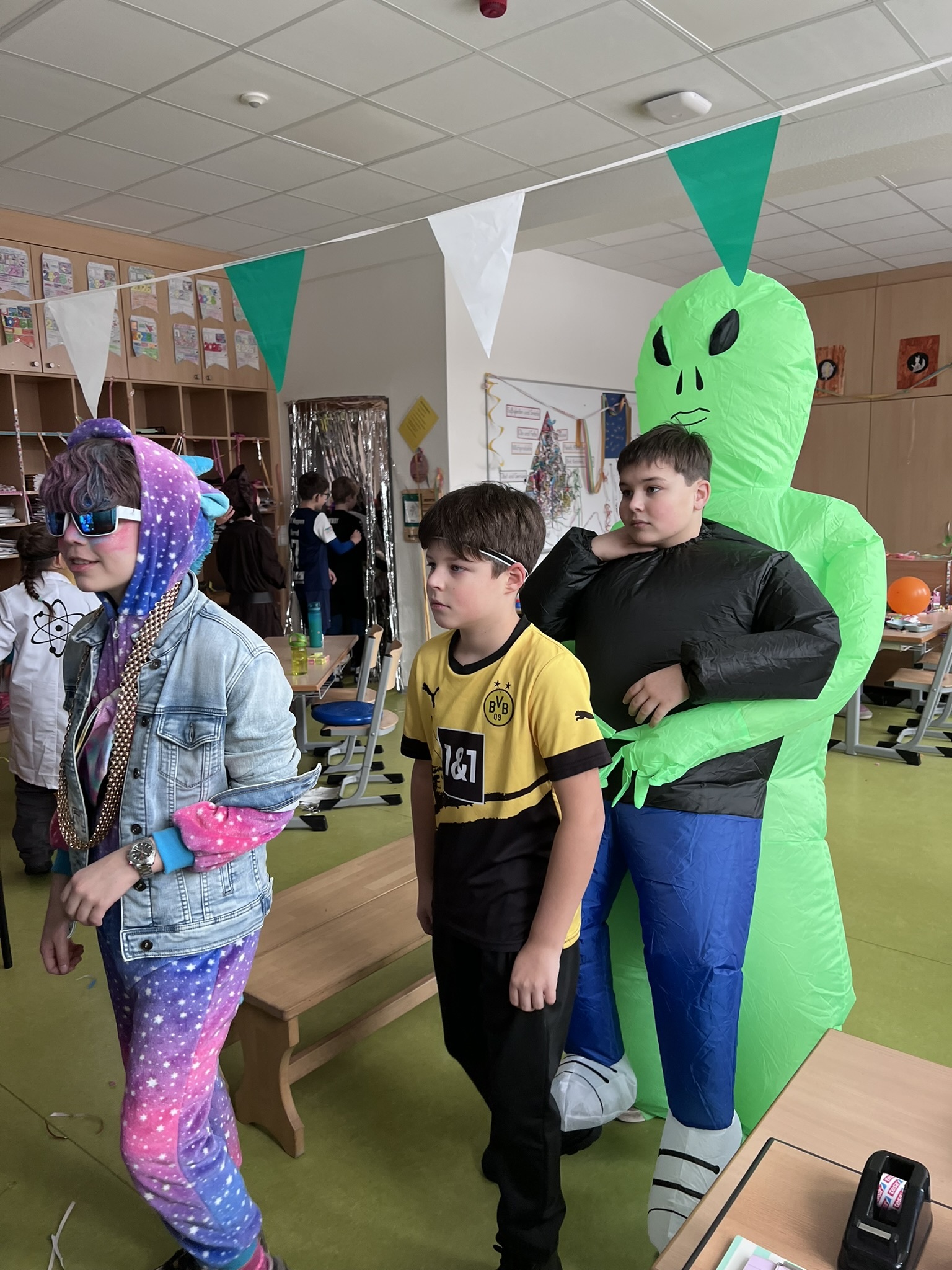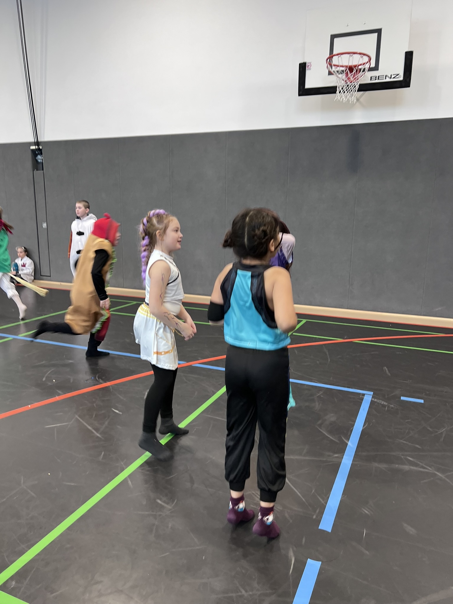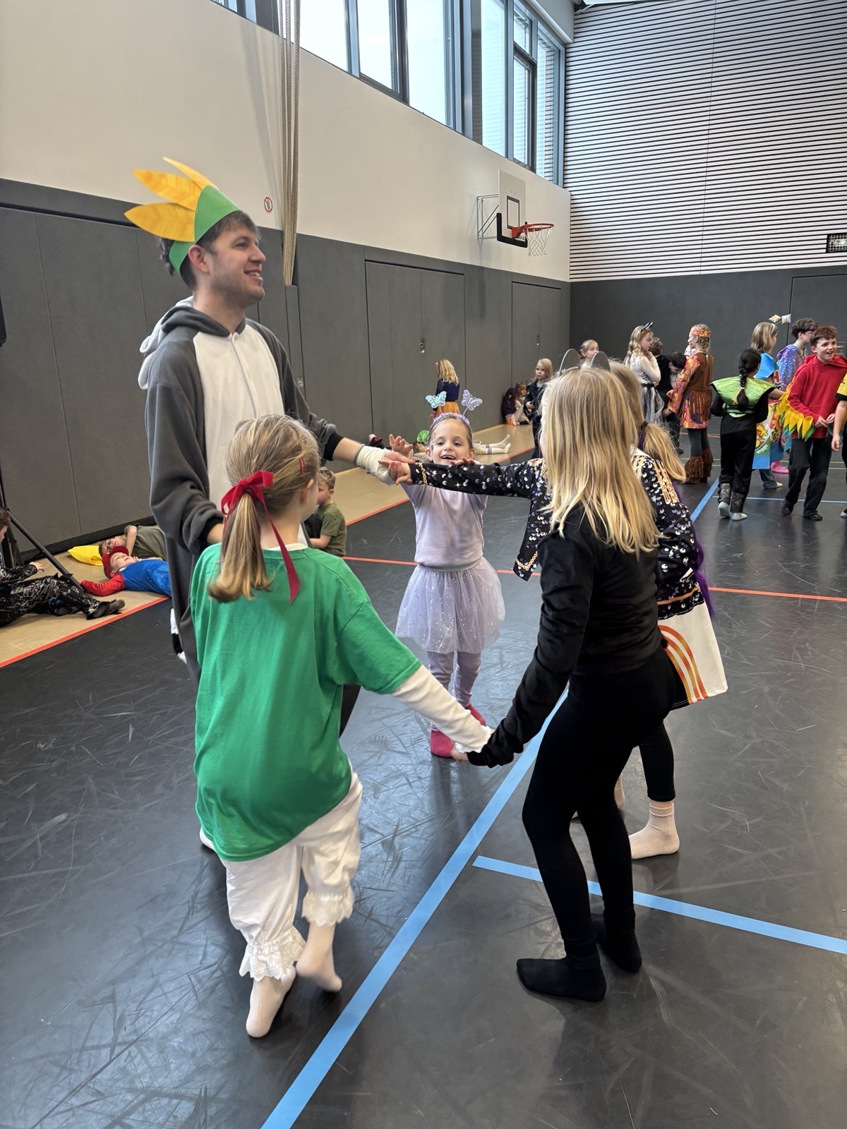 Nach dem Feiern in den Klassen ging es schließlich für alle Kinder gemeinsam in die Turnhalle. Dort wurde ausgelassen weitergefeiert, getanzt und gelacht. Zum krönenden Abschluss fand die große Kostümprämierung der gesamten Schule statt, bei der die besten Kostüme ausgewählt und besonders geehrt wurden.