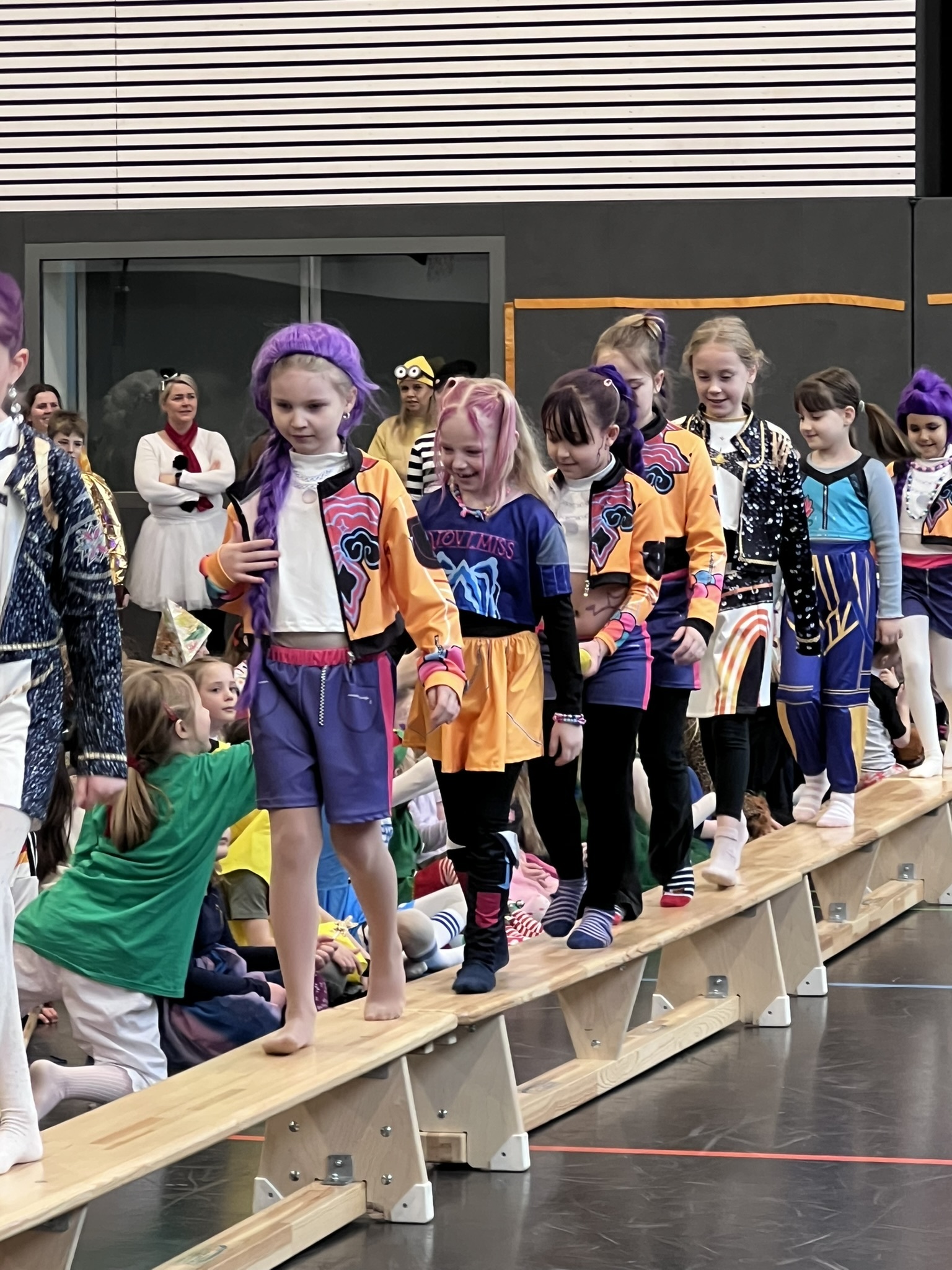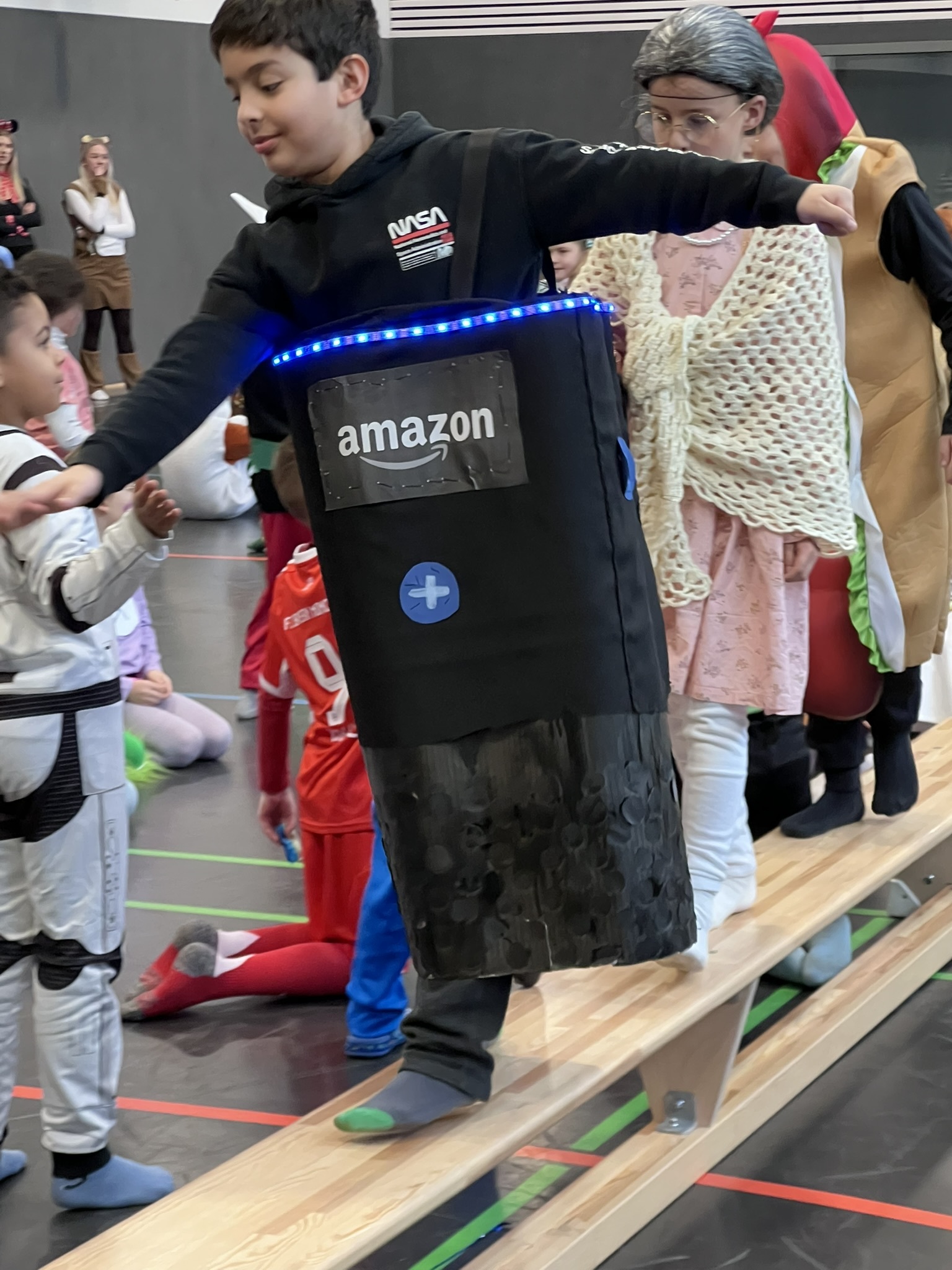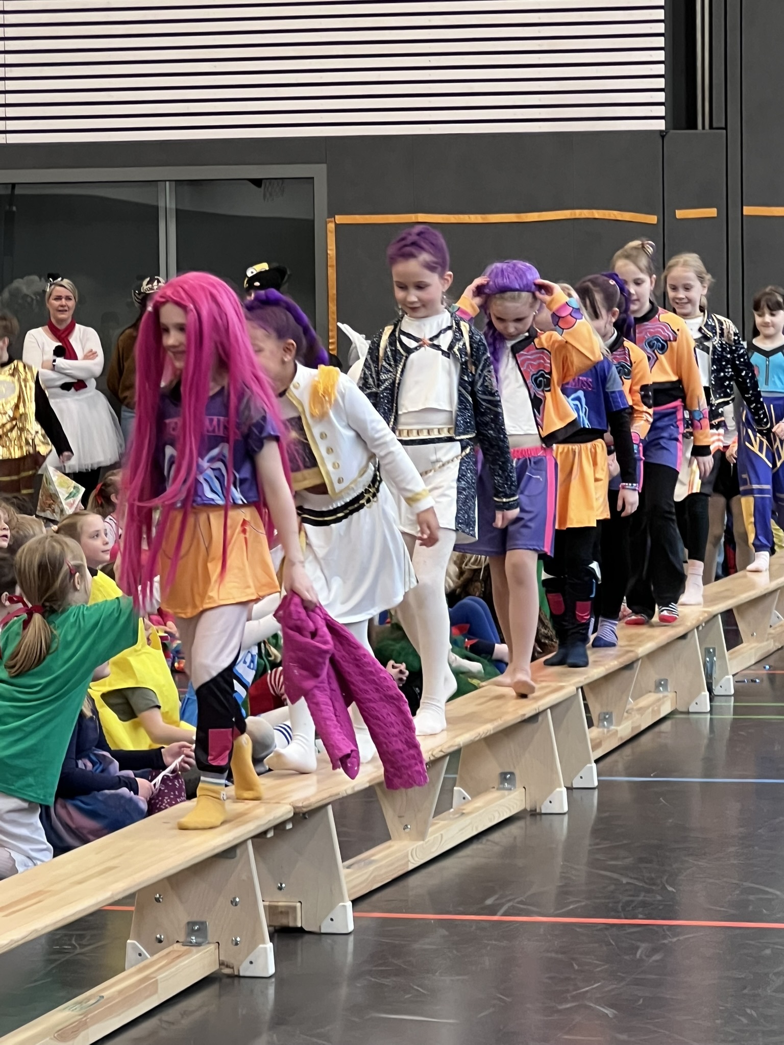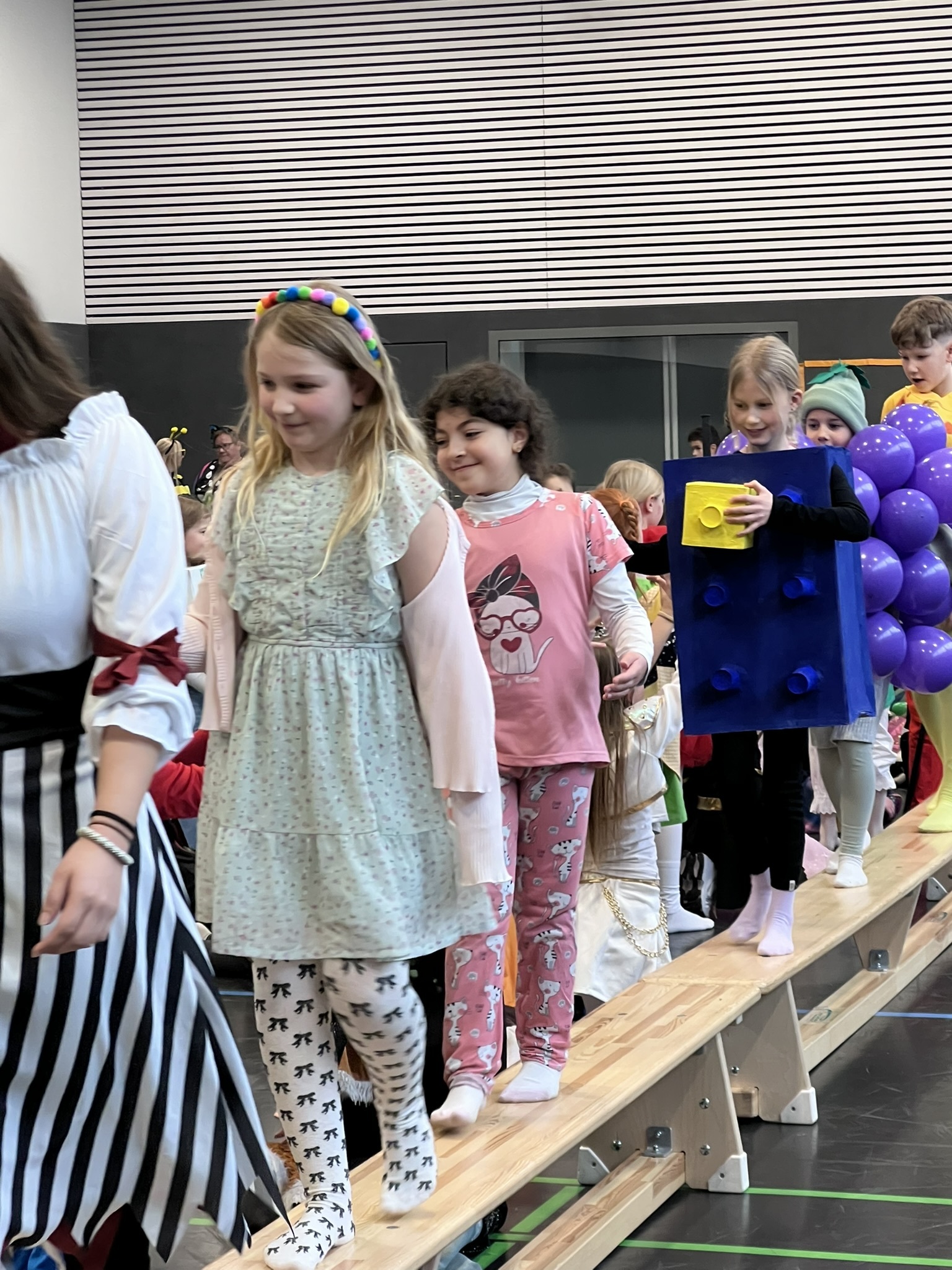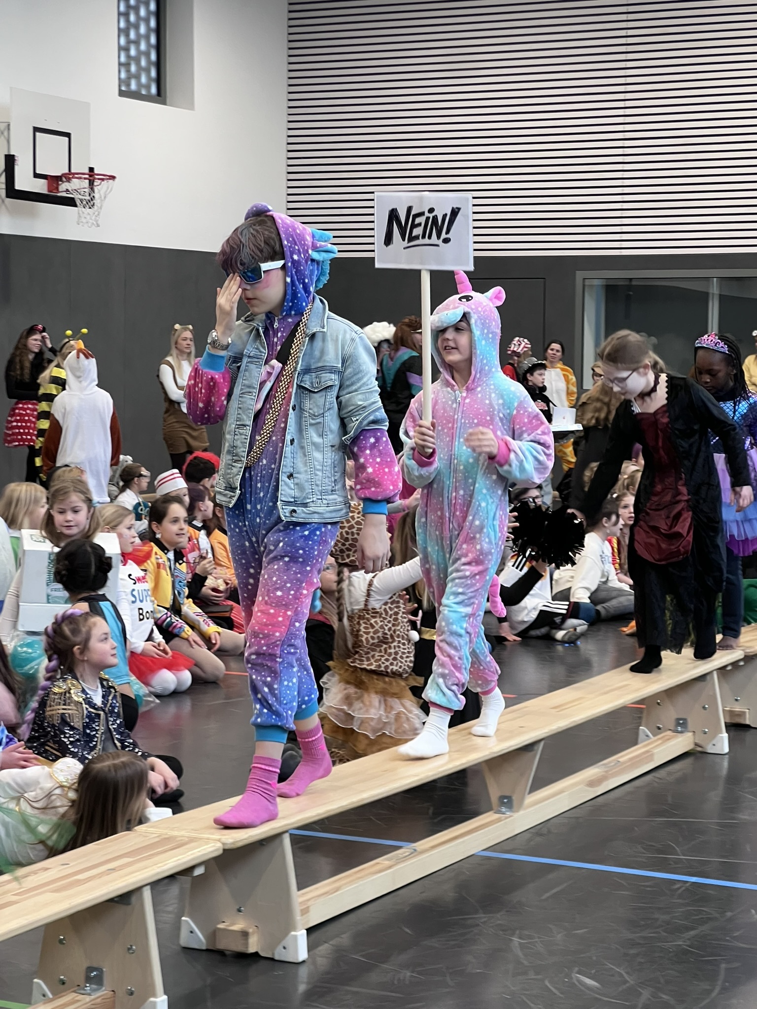 Nach dem Feiern in den Klassen ging es schließlich für alle Kinder gemeinsam in die Turnhalle. Dort wurde ausgelassen weitergefeiert, getanzt und gelacht. Zum krönenden Abschluss fand die große Kostümprämierung der gesamten Schule statt, bei der die besten Kostüme ausgewählt und besonders geehrt wurden.