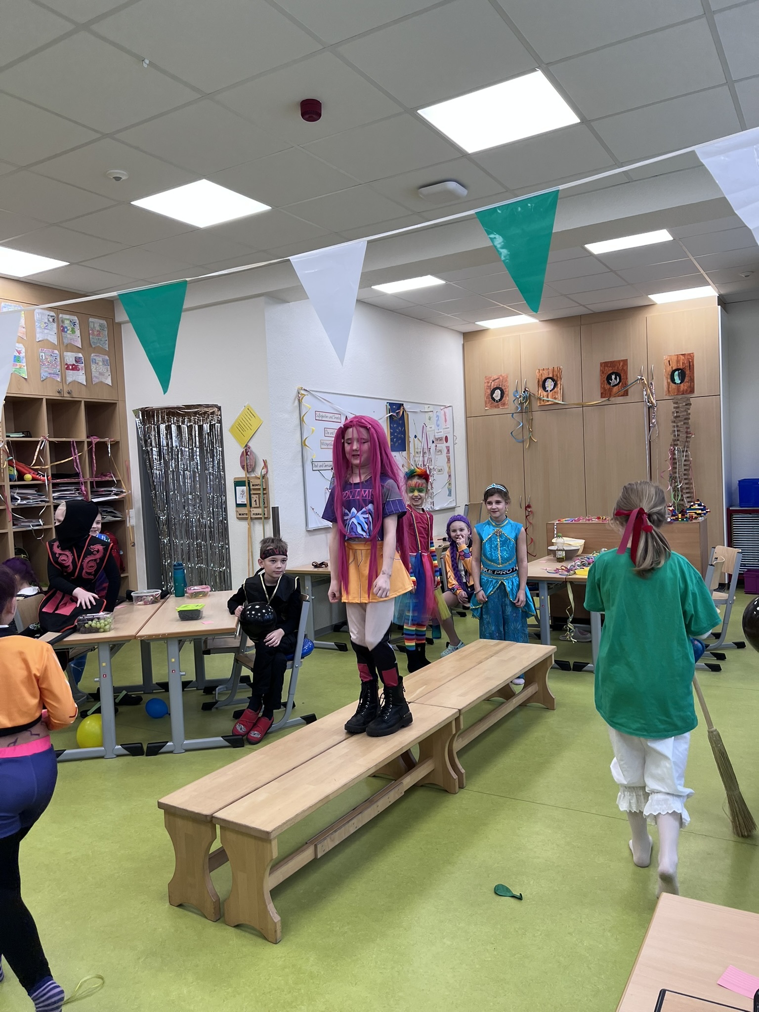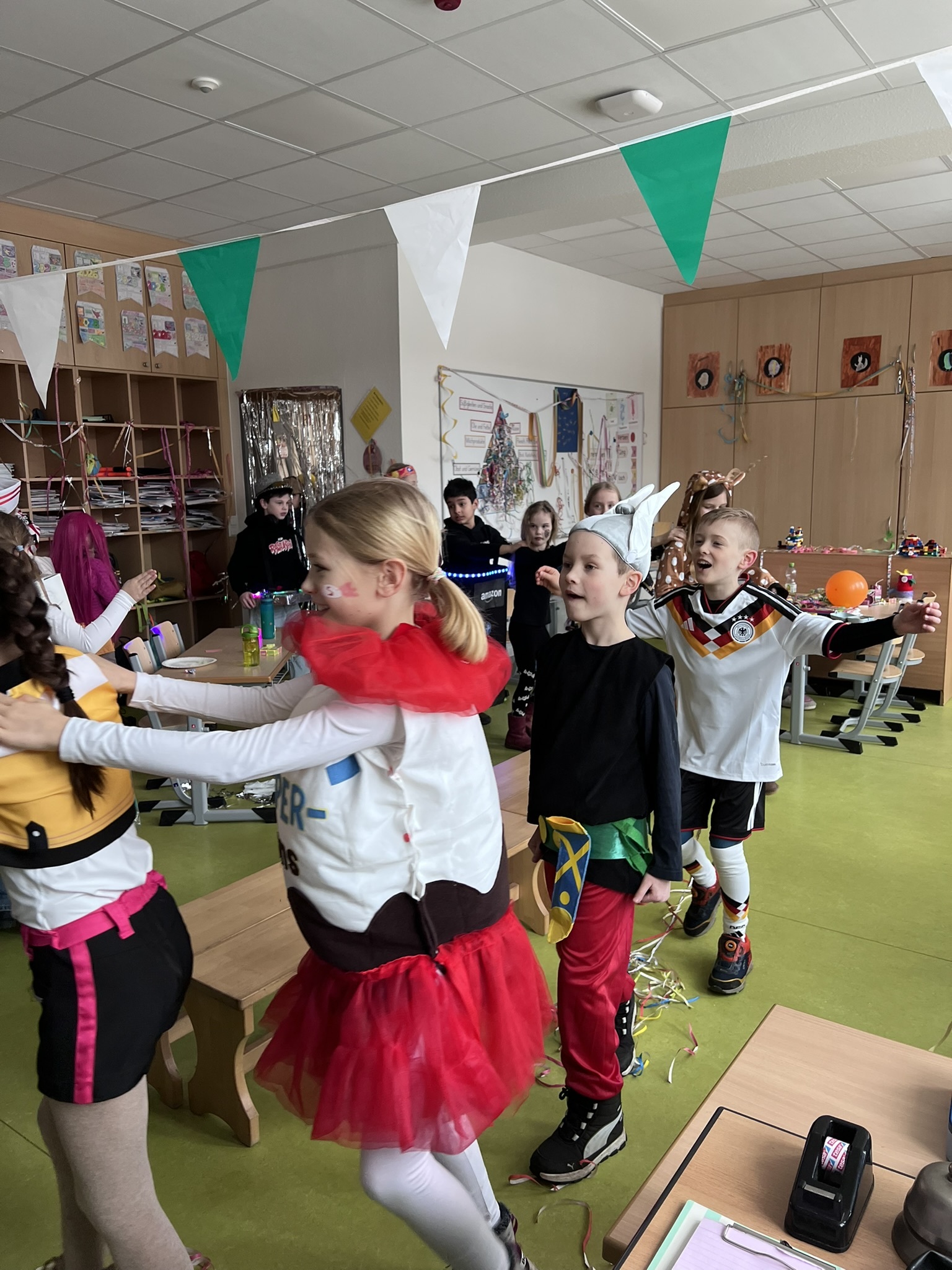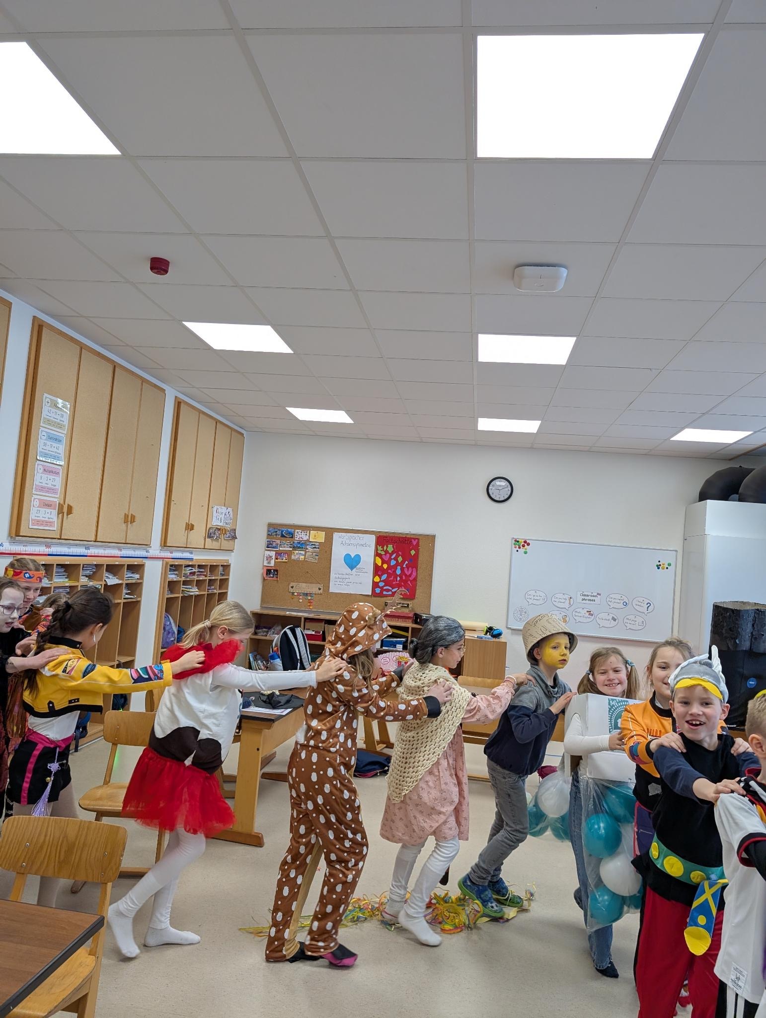 In den Klassen wurde gemeinsam gespielt, gelacht und getanzt. Bei verschiedenen Spielen hatten alle Kinder großen Spaß und konnten ihr Geschick und ihre Teamfähigkeit zeigen. Die fröhliche Stimmung war im ganzen Schulhaus zu spüren.