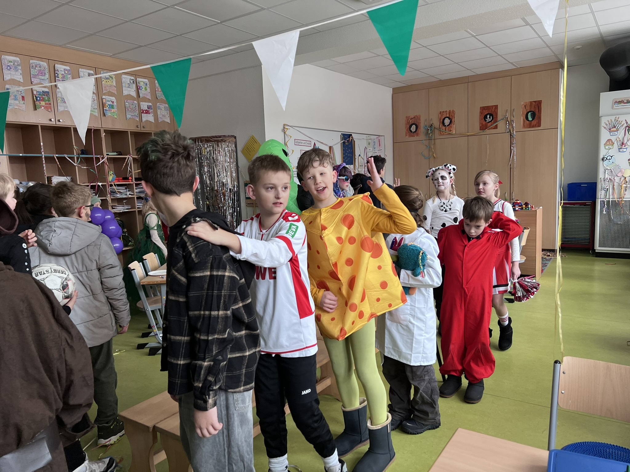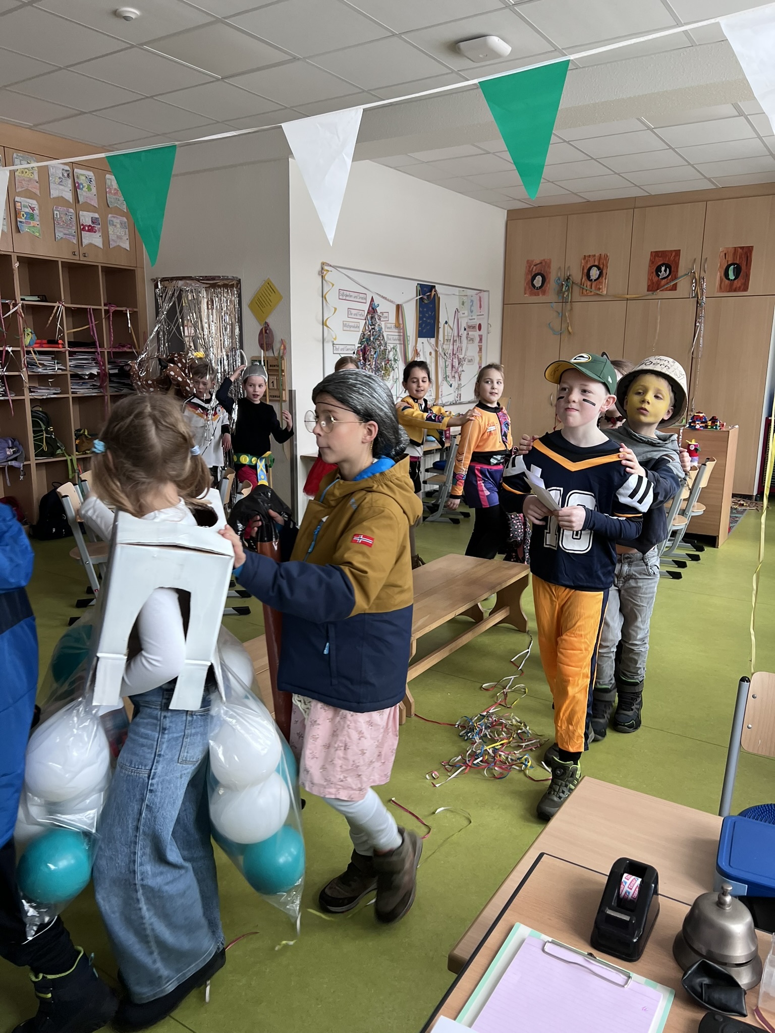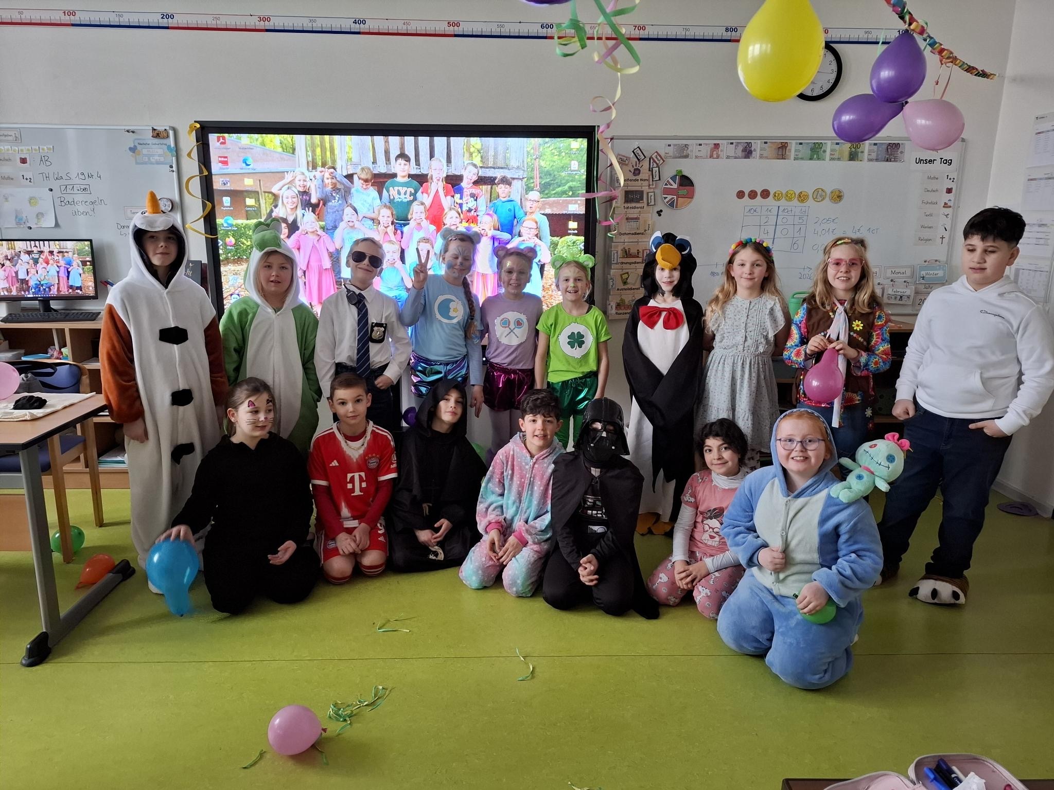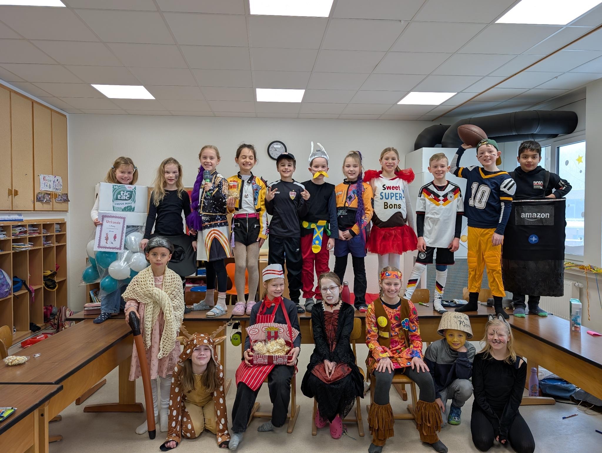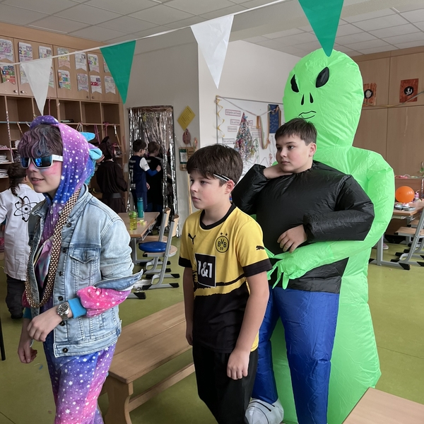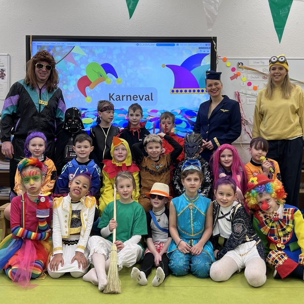 Am Rosenmontag wurde in unserer Grundschule ausgelassen Karneval gefeiert. Schon am Morgen kamen die Kinder in bunten und kreativen Kostümen in ihre Klassen. Von Prinzessinnen über Superhelden bis hin zu lustigen Tieren war alles vertreten.