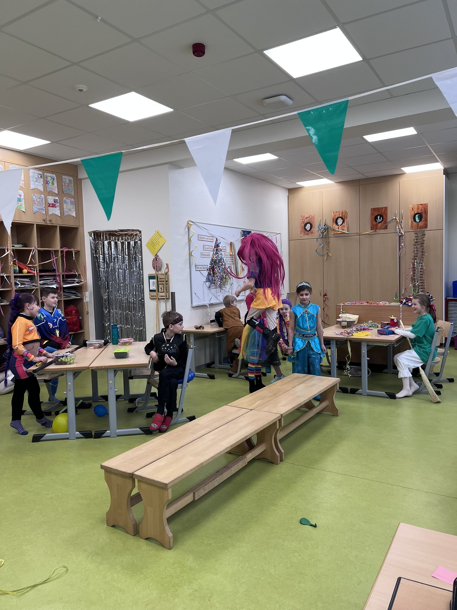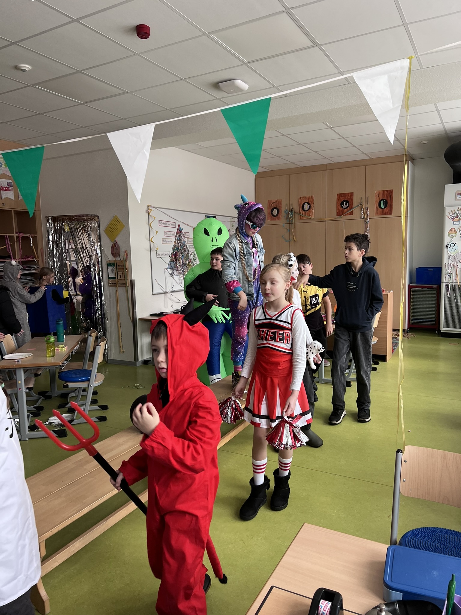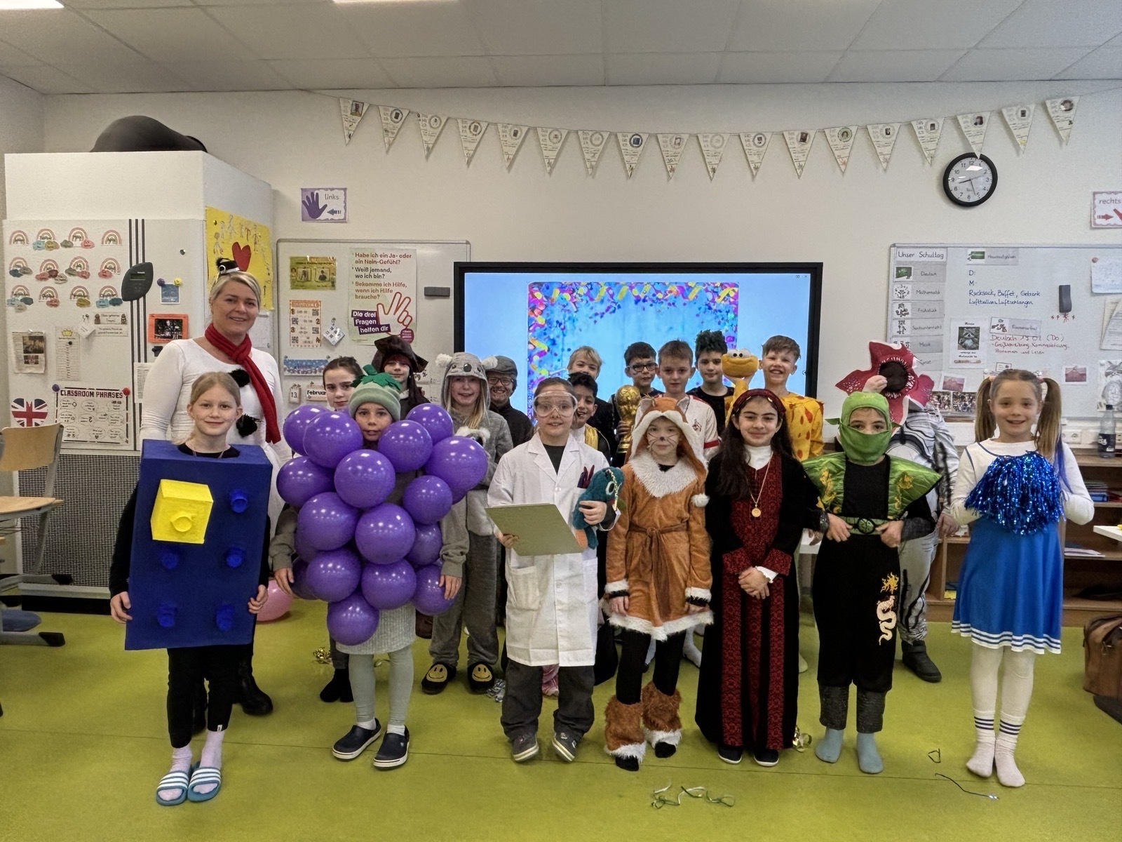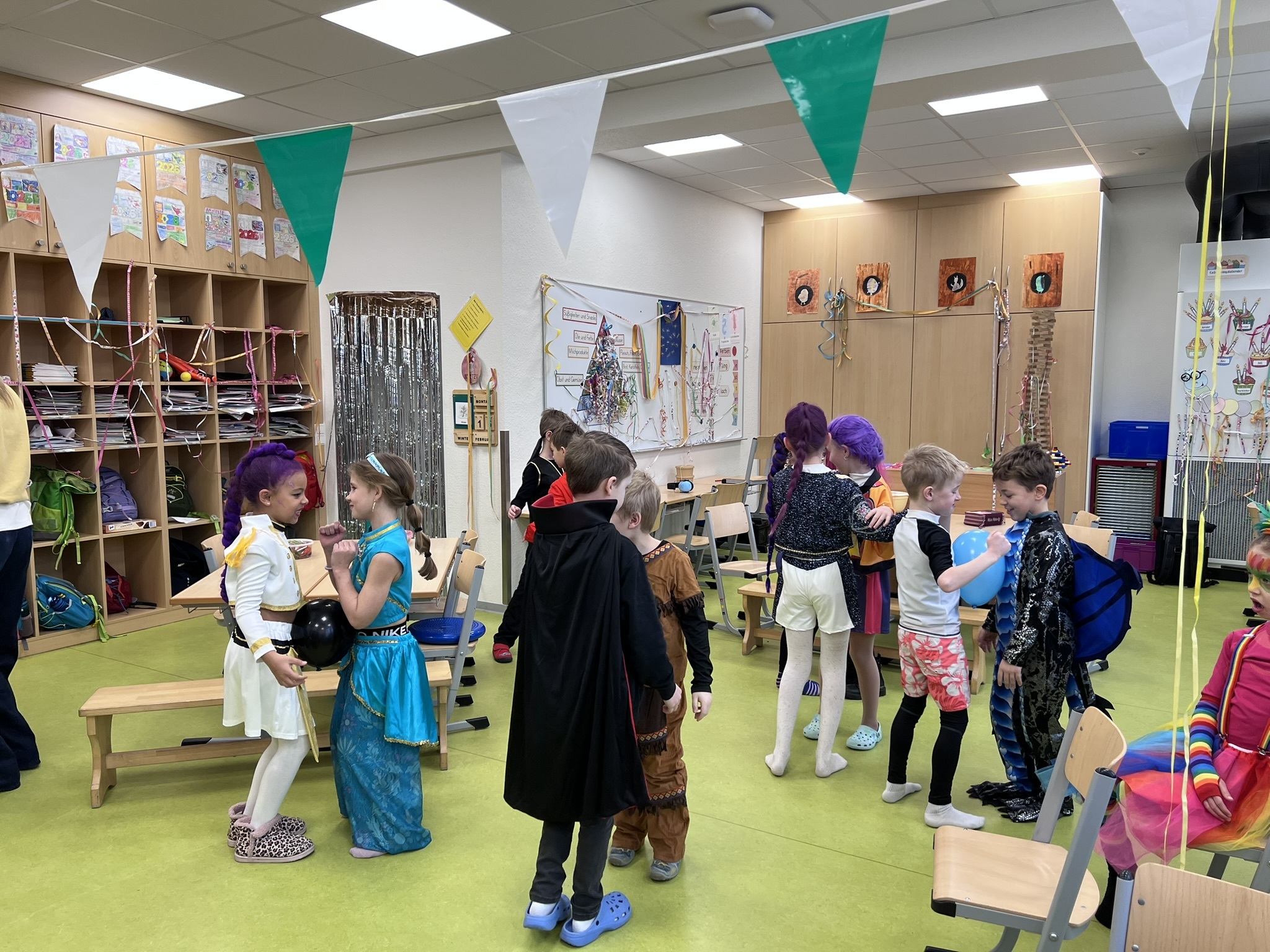 Am Rosenmontag wurde in unserer Grundschule ausgelassen Karneval gefeiert. Schon am Morgen kamen die Kinder in bunten und kreativen Kostümen in ihre Klassen. Von Prinzessinnen über Superhelden bis hin zu lustigen Tieren war alles vertreten.