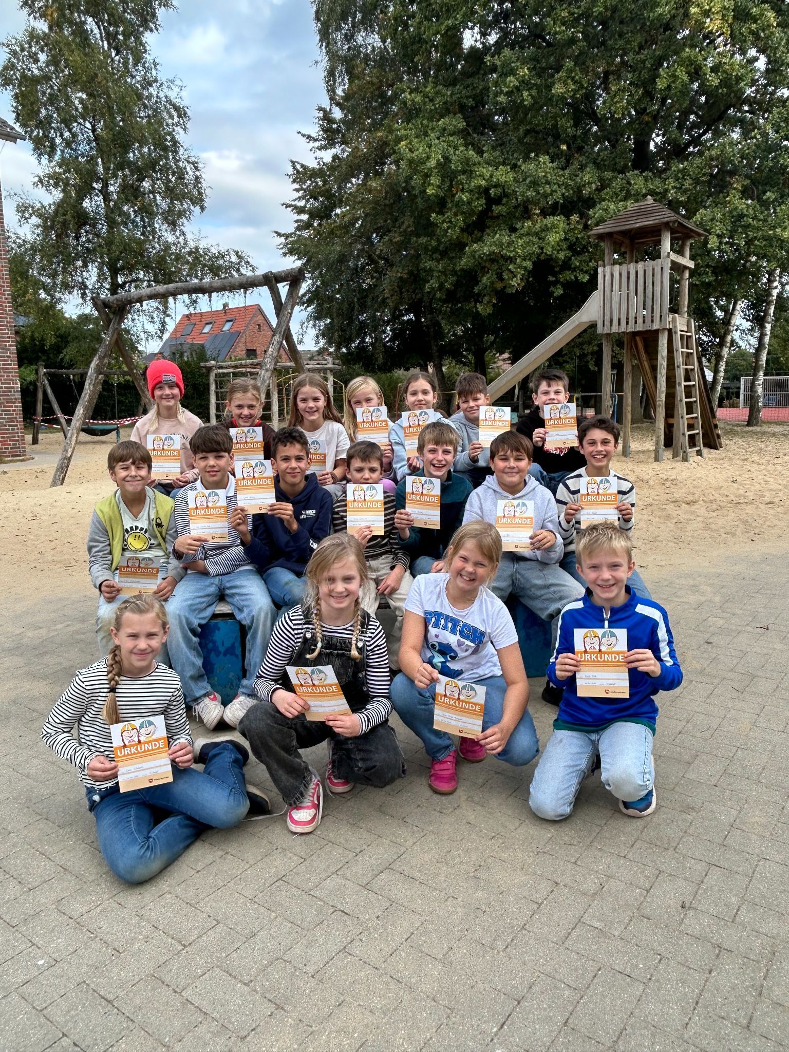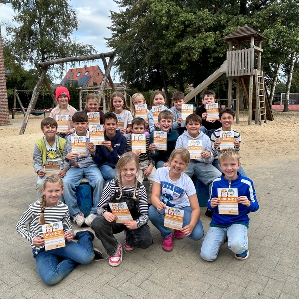 Im Rahmen des Sachunterrichts lernten die Viertklässler alles Wichtige rund um das Fahrrad, wichtige Verkehrszeichen sowie Verkehrsregeln für das sichere Verhalten auf der Straße. Neben einer schriftlichen Lernüberprüfung fand eine praktische Fahrradprüfung in Form eines Parcours auf dem Schulhof und einer geübten Strecke durch Altenlingen statt. Die Kinder zeigten, was sie gelernt haben und erhielten eine Urkunde für ihre erfolgreiche Teilnahme.