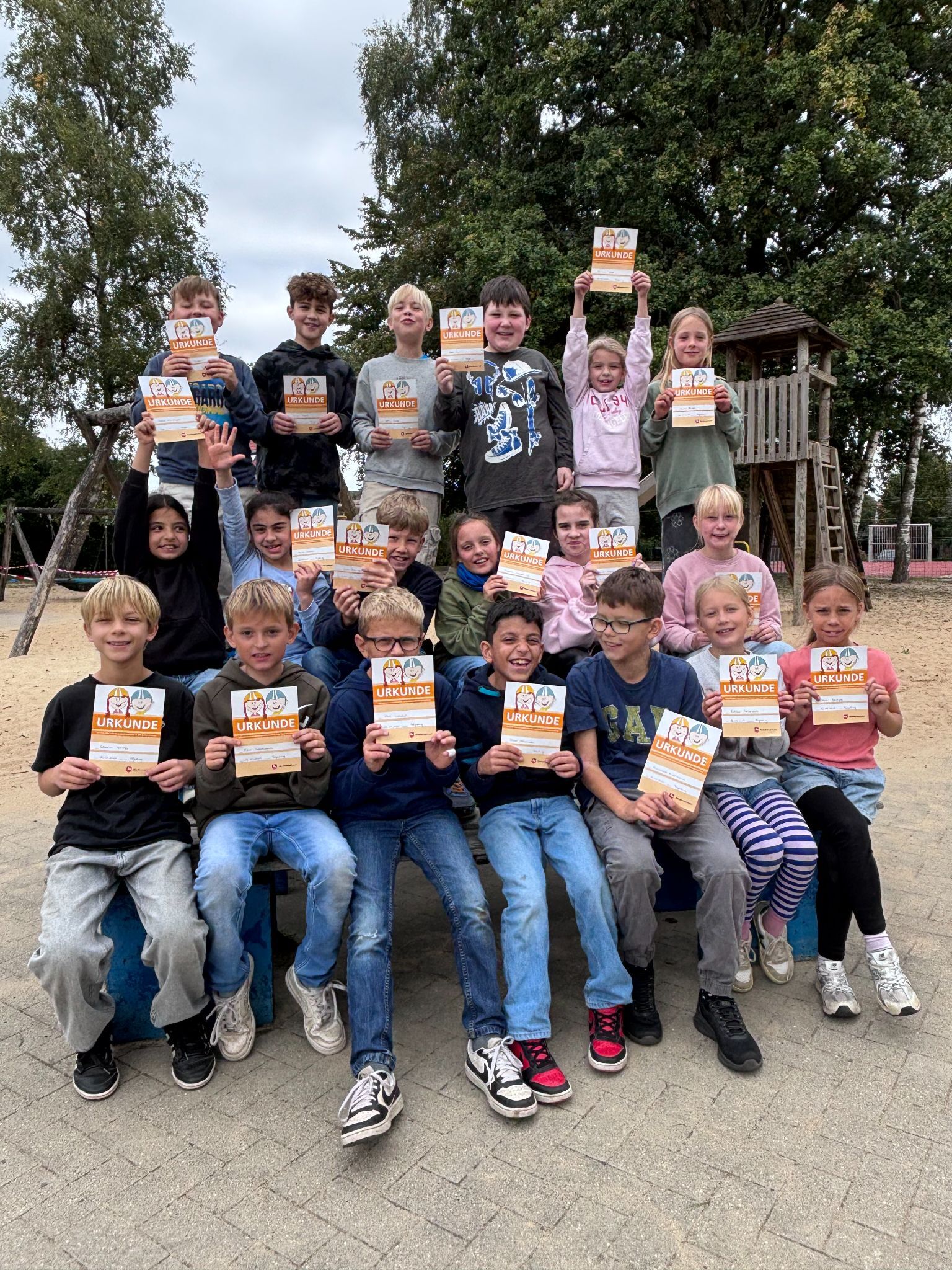 Am 26.09.2025 absolvierten die Schülerinnen und Schüler der vierten Klassen in Zusammenarbeit mit der Polizei und der Verkehrswacht die Radfahrprüfung.